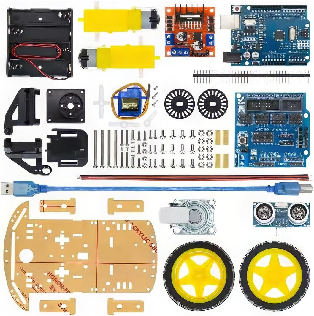 Das 2WD Robot Smart Car Education Starter Kit ist ein idealer Einstieg in die Welt der Robotik und Elektronik. Dieses Kit enthält alle notwendigen Komponenten, um ein intelligentes Auto zu bauen, das über die Arduino IDE programmiert werden kann. Die einzelnen Teile, darunter Räder, Fahrwerk, Motoren und Sensoren, sind gut aufeinander abgestimmt und ermöglichen eine einfache Montage und Programmierung.