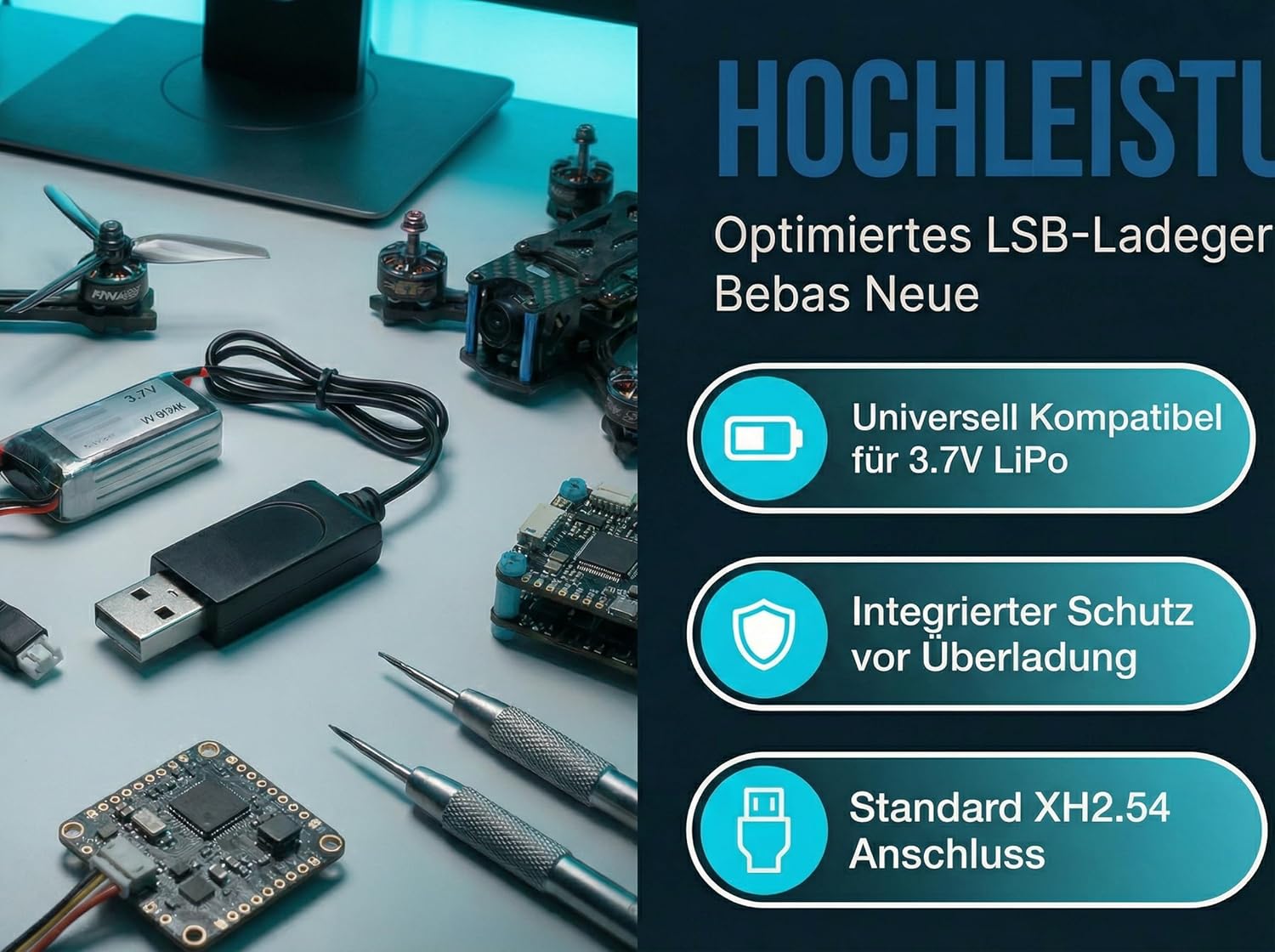 - Kompatibel mit verschiedenen 3,7 V Lipo-Akkus