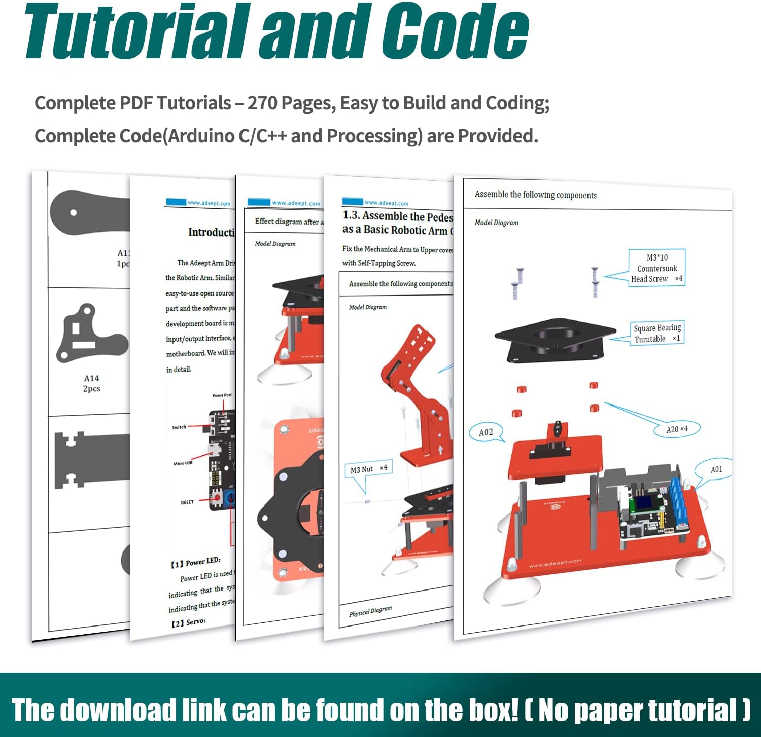 Der Adeept 5-DOF-Roboterarm-Kit ist ein spannendes DIY-Projekt, das sich hervorragend für Technikbegeisterte und Lernende eignet. Dieses Kit ist kompatibel mit der Arduino IDE und bietet eine großartige Möglichkeit, Programmier- und Robotikfähigkeiten zu entwickeln. Es enthält ein OLED-Display, das eine benutzerfreundliche Interaktion ermöglicht. Die beiliegenden PDF-Tutorials und der Download-Link für den Verarbeitungscode erleichtern den Einstieg.