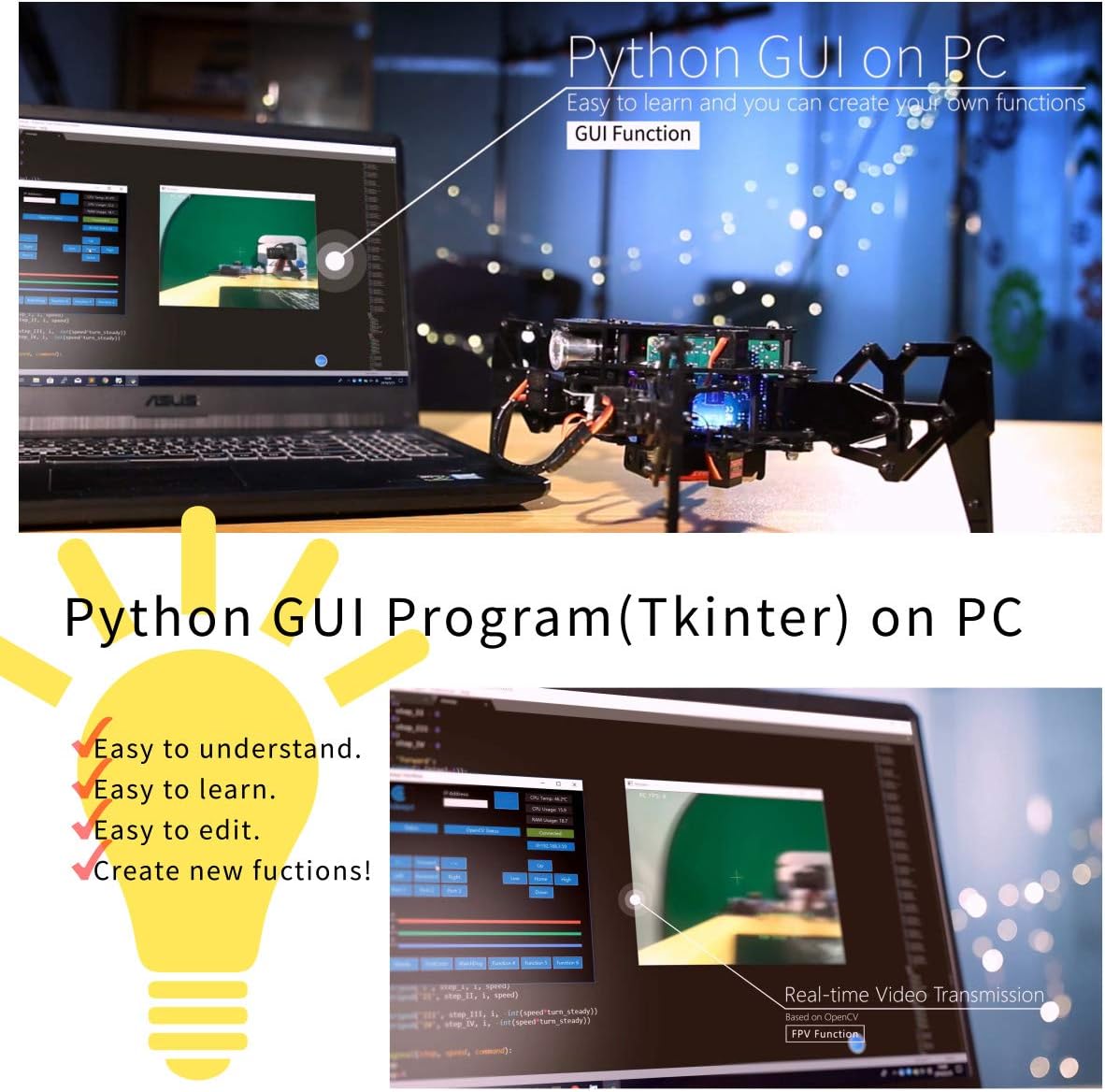 Adeept Spider Robot Quadruped Robot Kit für Raspberry Pi 4/3 Modell B+/B STEM Creeping Robot OpenCV Tracking Selbststabilisierung mit MPU6050 Gyro Sensor Darkpaw Bionic Raspberry Pi Robot & PDF