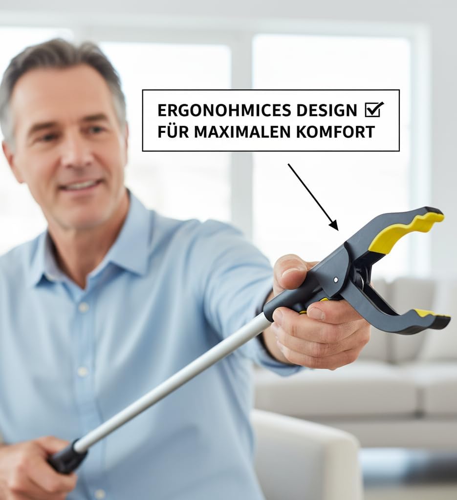Der ANGEL 2er Set Greifer ist eine praktische Greif- und Hebehilfe, die sich hervorragend für den Haushalt und den Alltag eignet. Mit einer Länge von 76 cm ermöglicht er ein müheloses Aufheben von Müll oder anderen Gegenständen, ohne sich bücken zu müssen. Die Greifzange ist ergonomisch gestaltet, leicht und bequem zu handhaben, was sie ideal für Senioren macht.