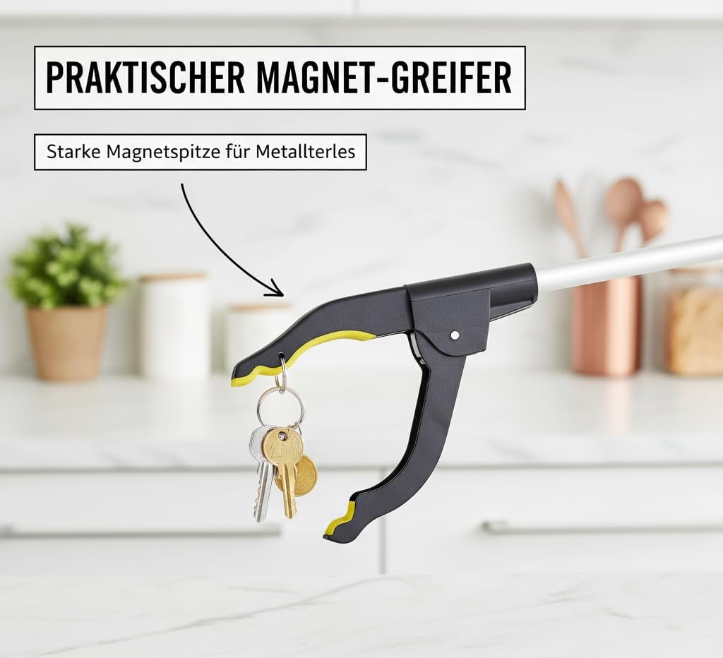 Dank des rutschfesten Griffs und der Magnetspitze wird das Greifen von Gegenständen zusätzlich erleichtert. Das faltbare Design macht die Zange kompakt und einfach zu verstauen.