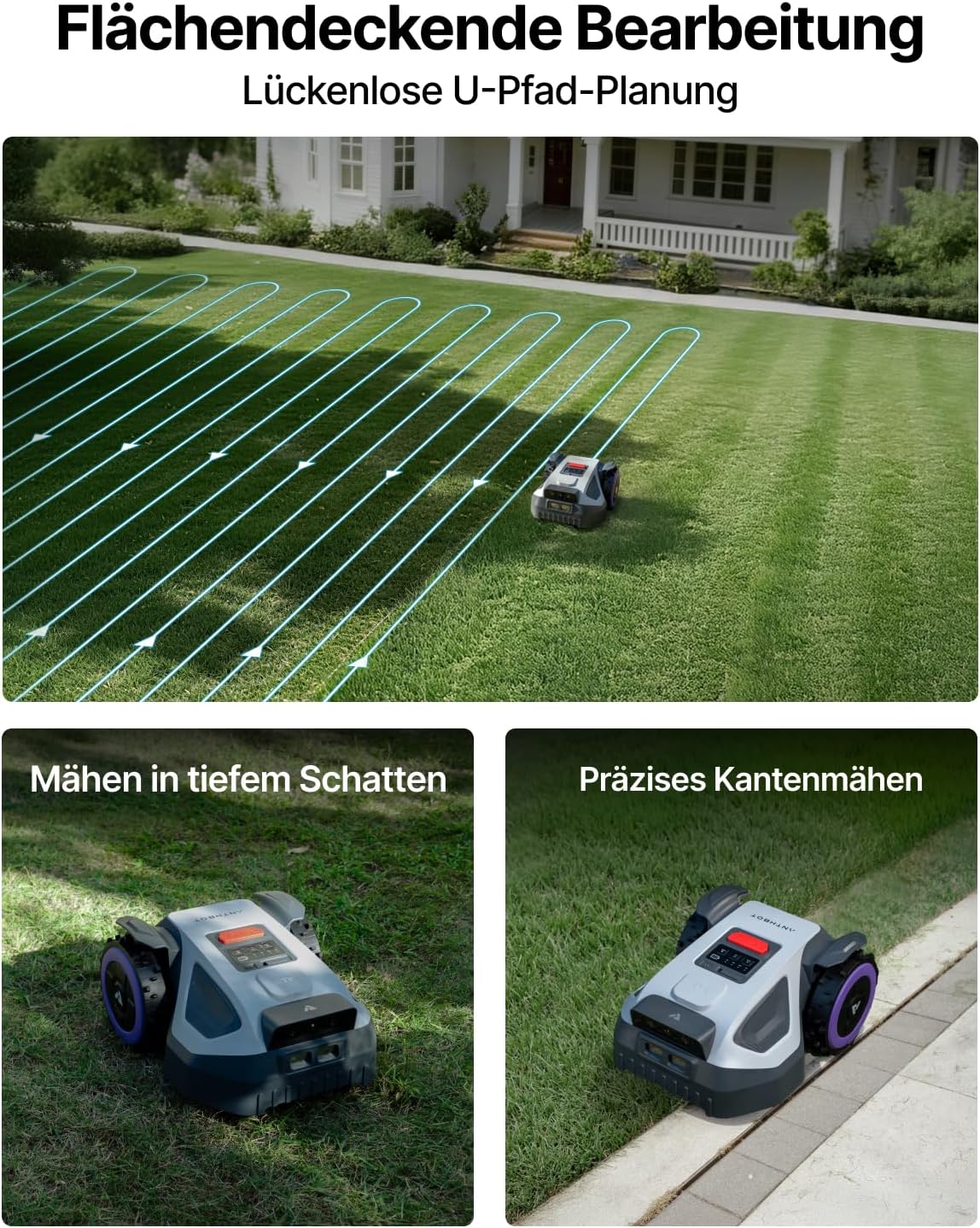 Der ANTHBOT M5 ist ein kompakter, autonomer Rasenmäher, der ohne Begrenzungskabel arbeitet und mit präziser RTK-Navigation sowie dualer Sicht ausgestattet ist. Mit einer starken Schnittleistung und der Fähigkeit, bis zu 500 m² zu mähen, ist er ideal für verschiedene Gartenflächen. Die einfache Einstellung und die geländegängige Konstruktion ermöglichen eine flexible Nutzung. Zudem sorgt die bürstenlose Power für eine effiziente Leistung und Langlebigkeit.