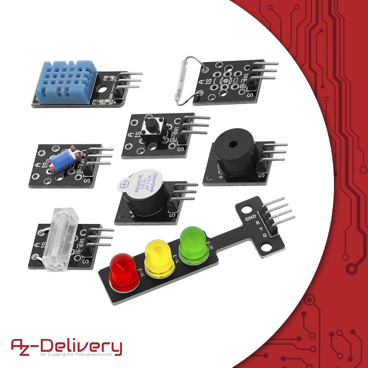 Bitte beachten Sie, dass einige Module, wie die quecksilberhaltigen Mercury Tilt Switch- und Light Cup-Module, nicht mehr Bestandteil des Kits sind, um den EU-Vorschriften zu entsprechen. Dieses Kit ist perfekt für Hobbyisten und Entwickler, die mit Arduino oder ähnlichen Mikrocontrollern arbeiten möchten.