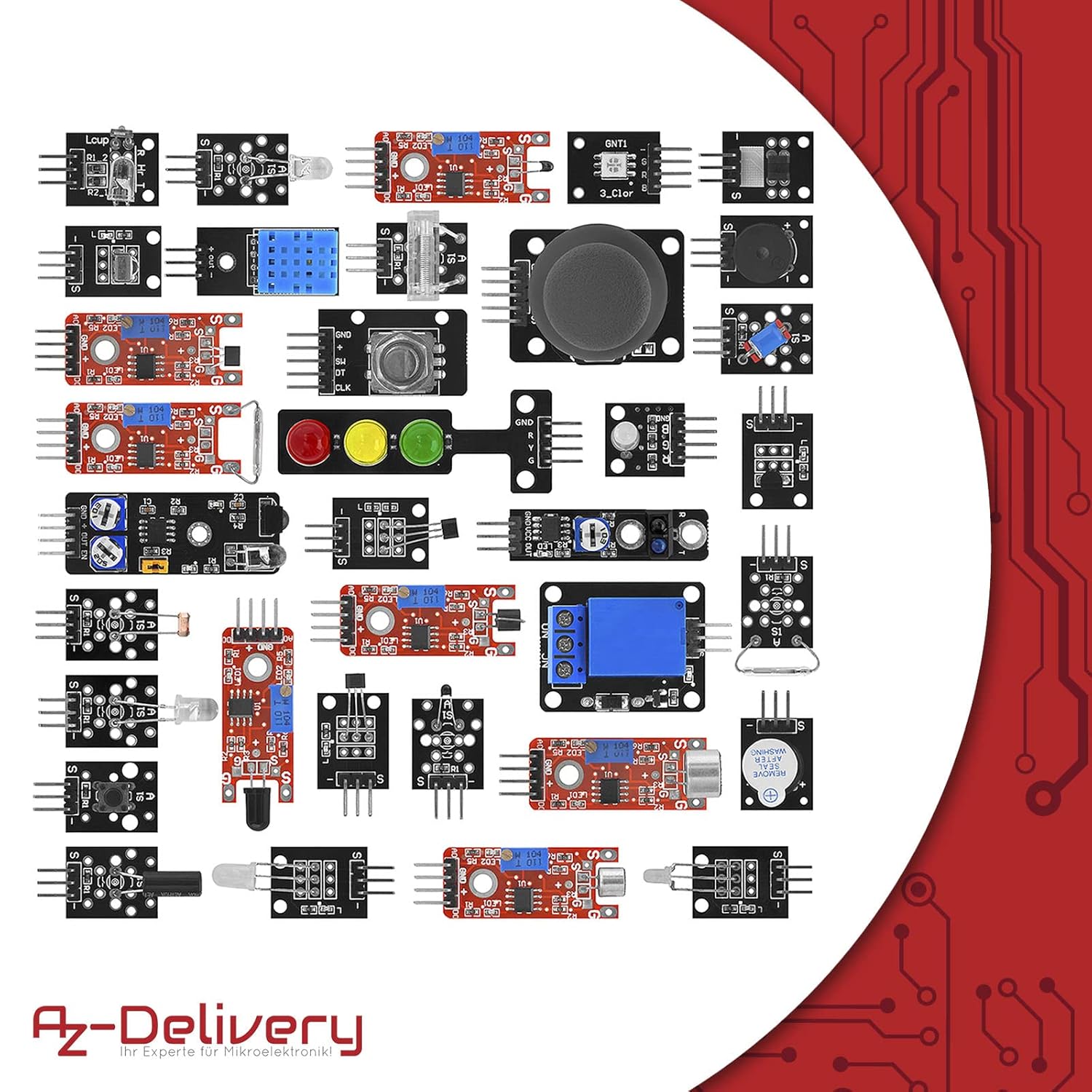 Das AZDelivery 35 in 1 Set Zubehör Sensor Kit ist eine umfassende Sammlung von Sensoren, die sich ideal für Mikrocontroller-Projekte eignen. Es enthält 35 verschiedene Sensoren, die Ihnen helfen, Ihre Ideen zu verwirklichen und Ihre Programmierfähigkeiten zu erweitern. Die wichtigsten Komponenten sind: