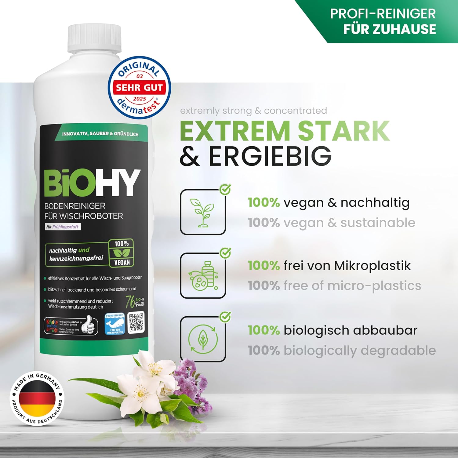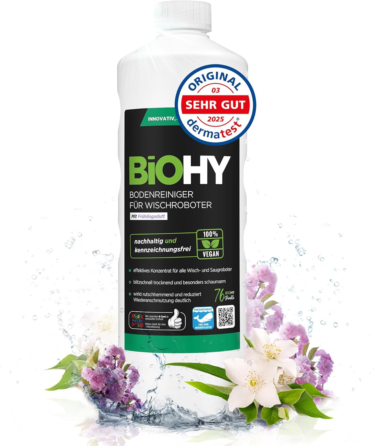 BiOHY Bodenreiniger für alle Wischroboter mit Frühlingsduft (1 Liter Flasche), schaumarm und streifenfrei, Konzentratreiniger für alle Böden