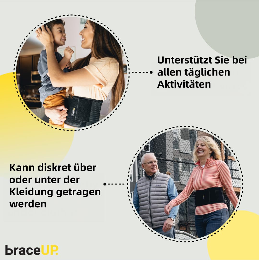 Der BraceUP Rückenstützgurt ist eine atmungsaktive Rückenbandage, die zur Unterstützung des unteren Rückens bei Ischias, Bandscheibenvorfall und Skoliose entwickelt wurde.