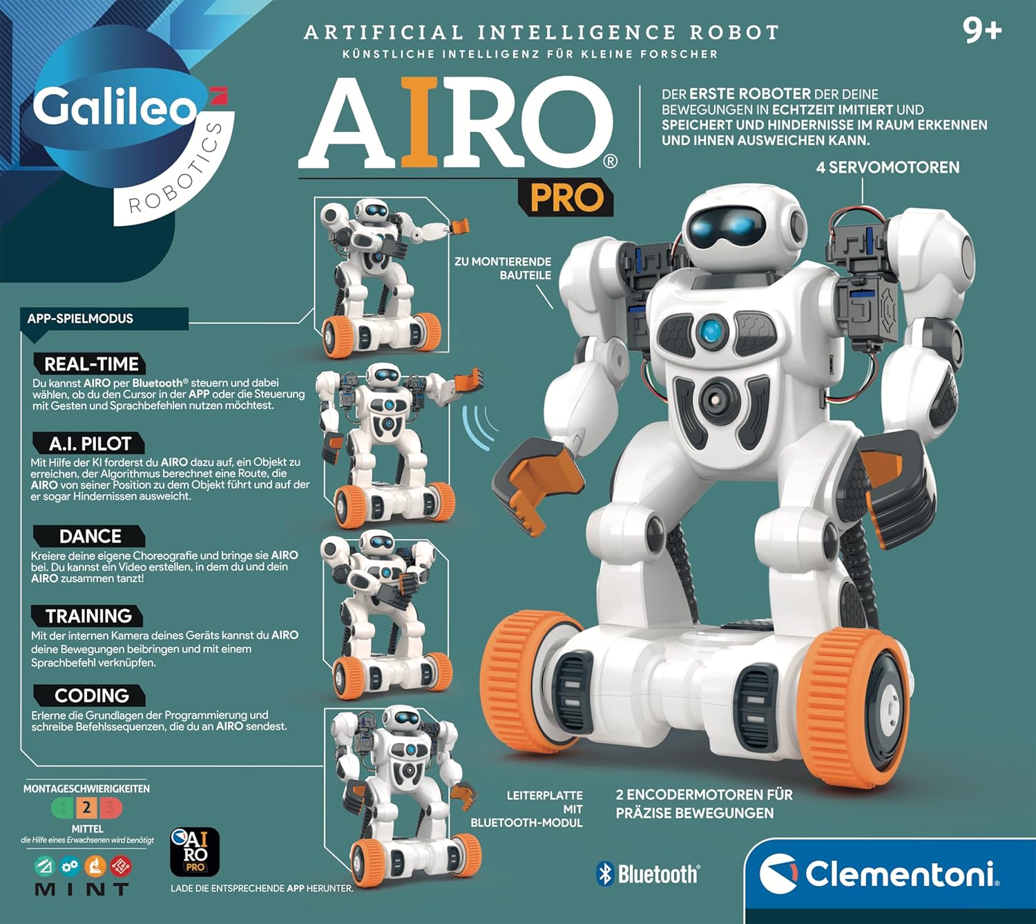 Clementoni Galileo Robotics AIRO 2.0 – KI-Lernroboter mit Gesten- & Spracherkennung, 6 Motoren & Bluetooth-App – Roboterspielzeug für Kinder ab 9 Jahren, 59473