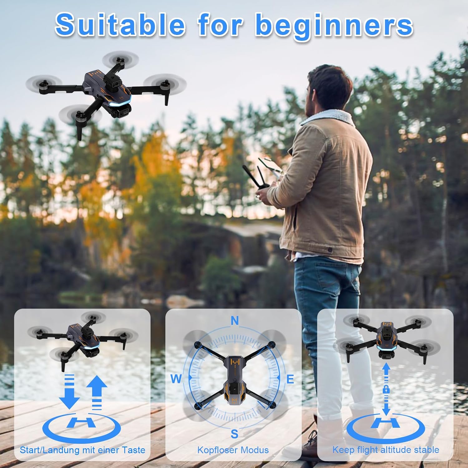Die Drohne mit Kamera ist ideal für Anfänger und bietet eine Vielzahl von Funktionen, die das Fliegen erleichtern. Mit einem 2,4-Zoll-LCD-Bildschirm können Sie das FPV-Filmmaterial in hoher Qualität genießen. Die Drohne ist mit einem Schwerkraftsensor ausgestattet, der stabile Flüge ermöglicht, sowie einem 3D-Flip-Modus für aufregende Flugmanöver.