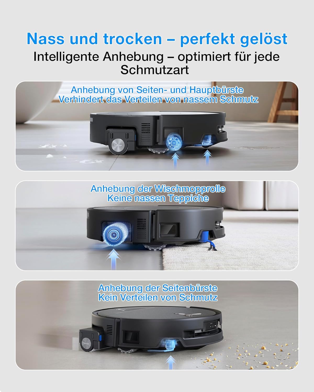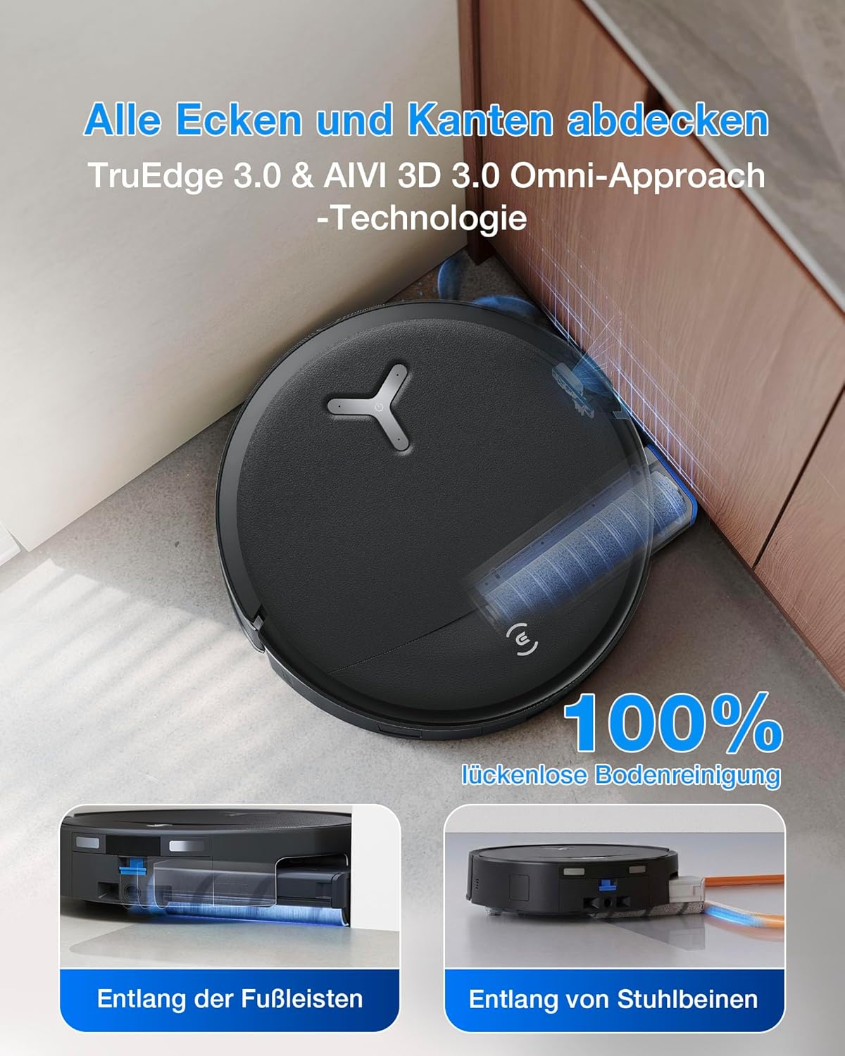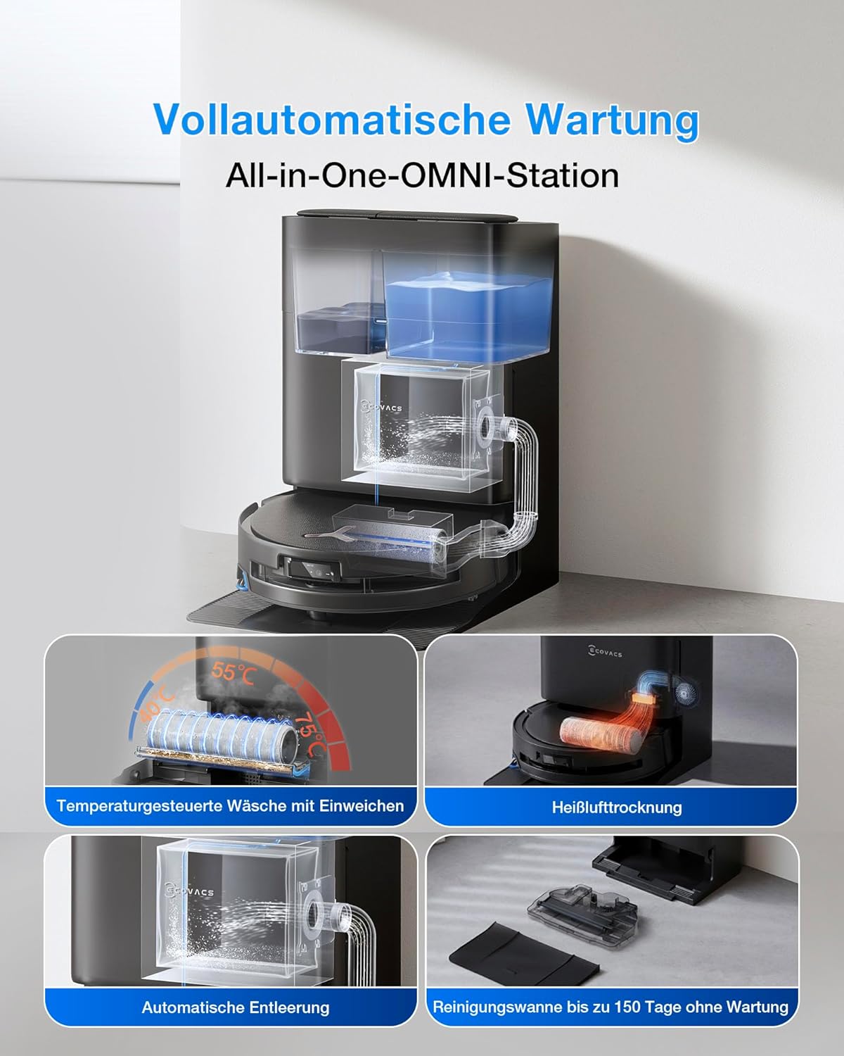 ECOVACS DEEBOT T80S Omni Robot Vacuum Cleaner with Mop Function, Robot Vacuum Cleaner 24800 Pa, OZMO Roller 2.0, ZeroTangle 3.0, Triple Lift, Hot Water Mop Wash at 40-75°C, Hot Air Drying, Black