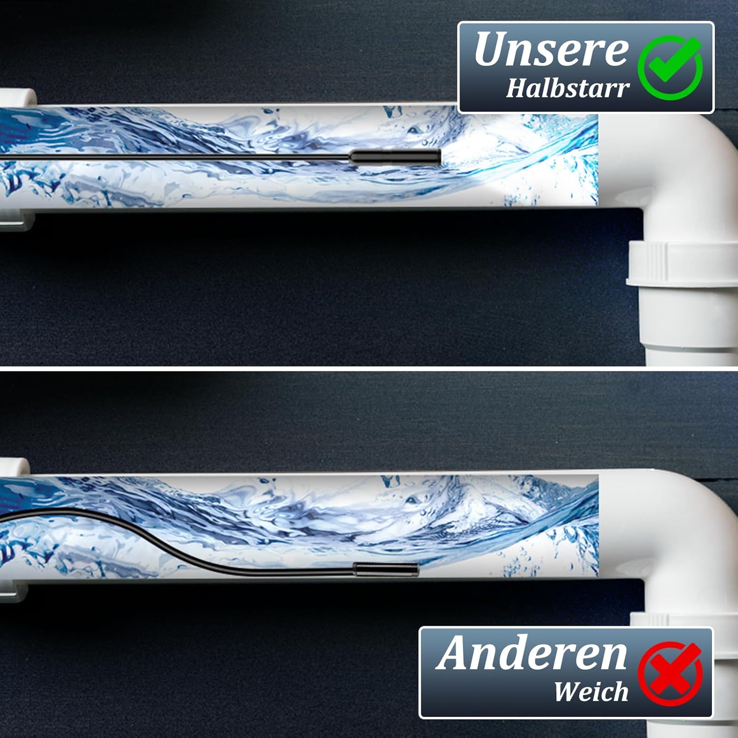 Die wasserdichte IP67-Bewertung sorgt dafür, dass die Kamera auch in feuchten Umgebungen eingesetzt werden kann. Mit einer Kabellänge von 5 Metern bietet sie ausreichend Reichweite für verschiedene Inspektionsaufgaben.