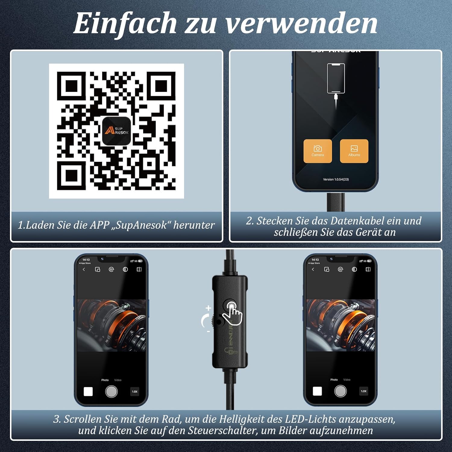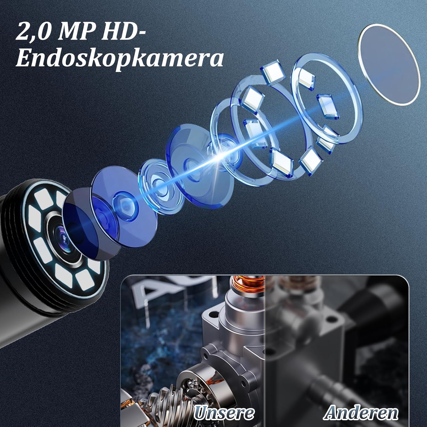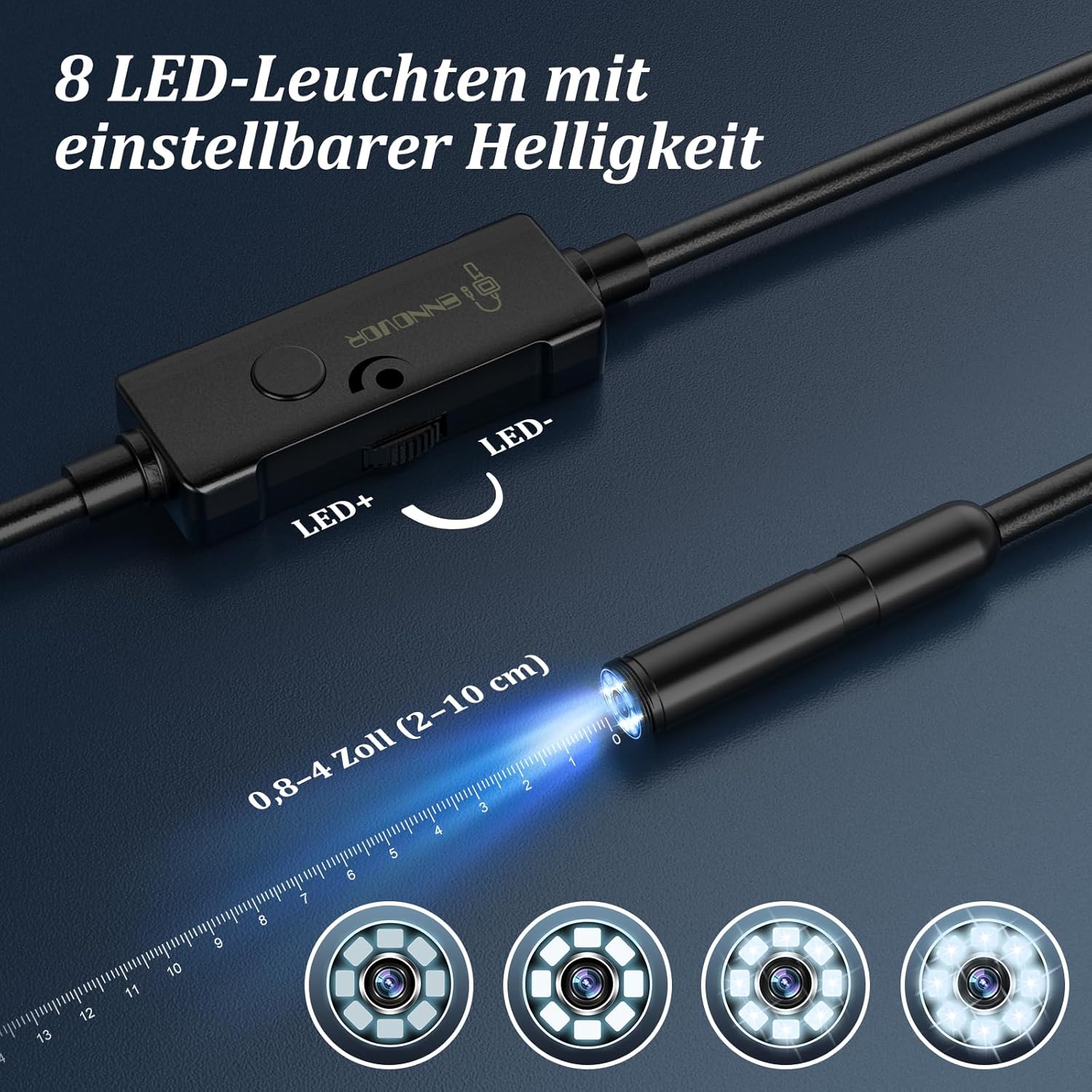 Die Ennovor 1920 HD Endoskopkamera ist eine vielseitige Inspektionskamera, die sich ideal für verschiedene Anwendungen eignet. Sie verfügt über 8 integrierte LED-Leuchten, die eine klare Sicht in dunklen Bereichen ermöglichen. Diese Kamera ist mit Android- und iOS-Geräten kompatibel und benötigt kein WLAN, was die Nutzung besonders einfach macht.