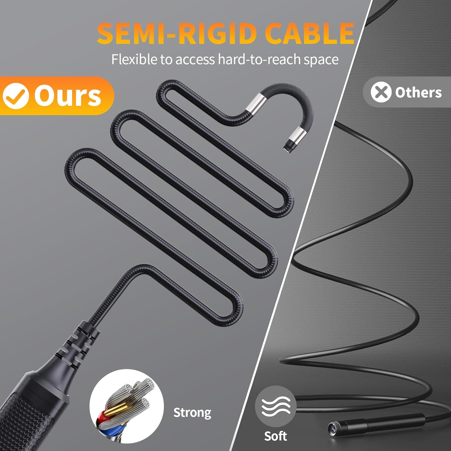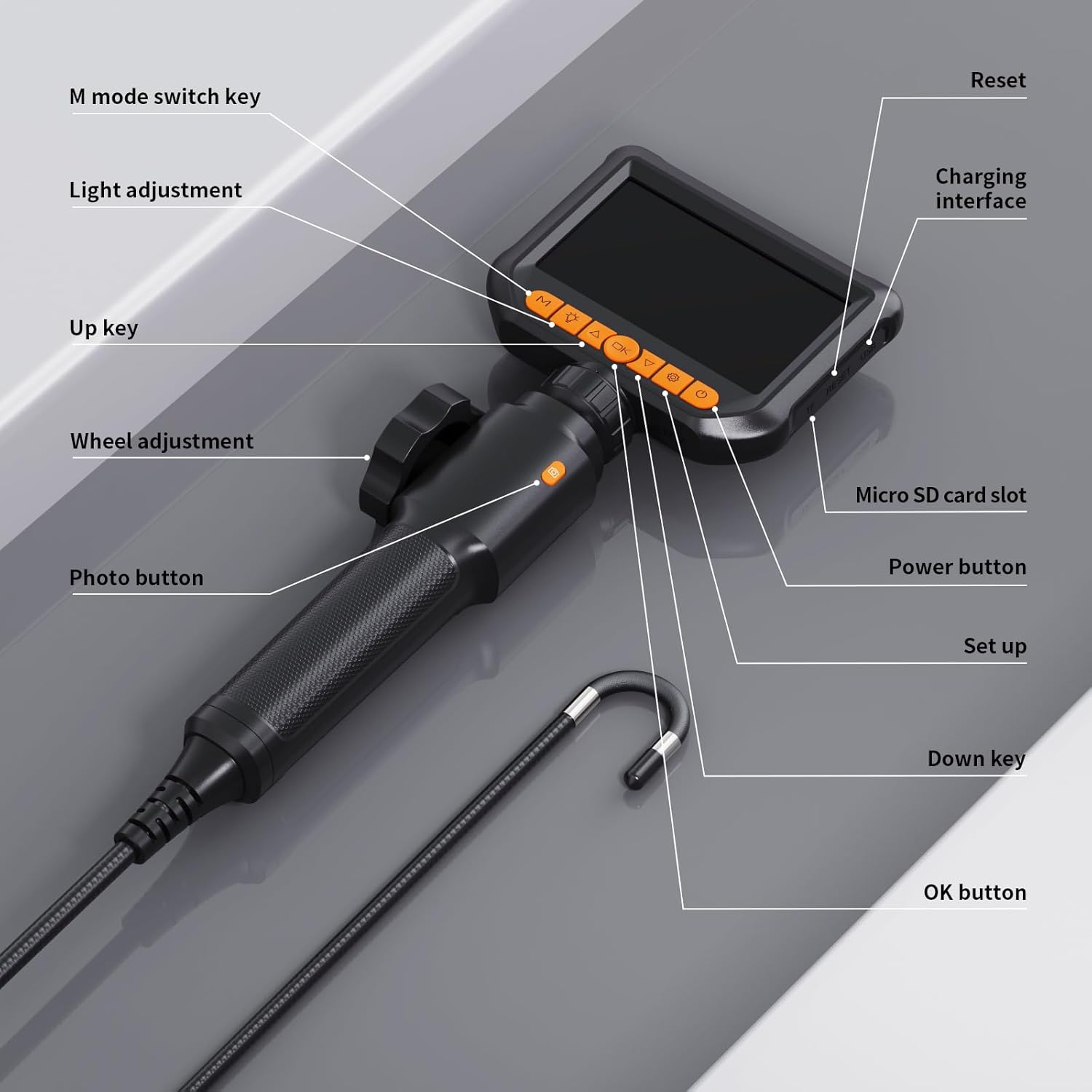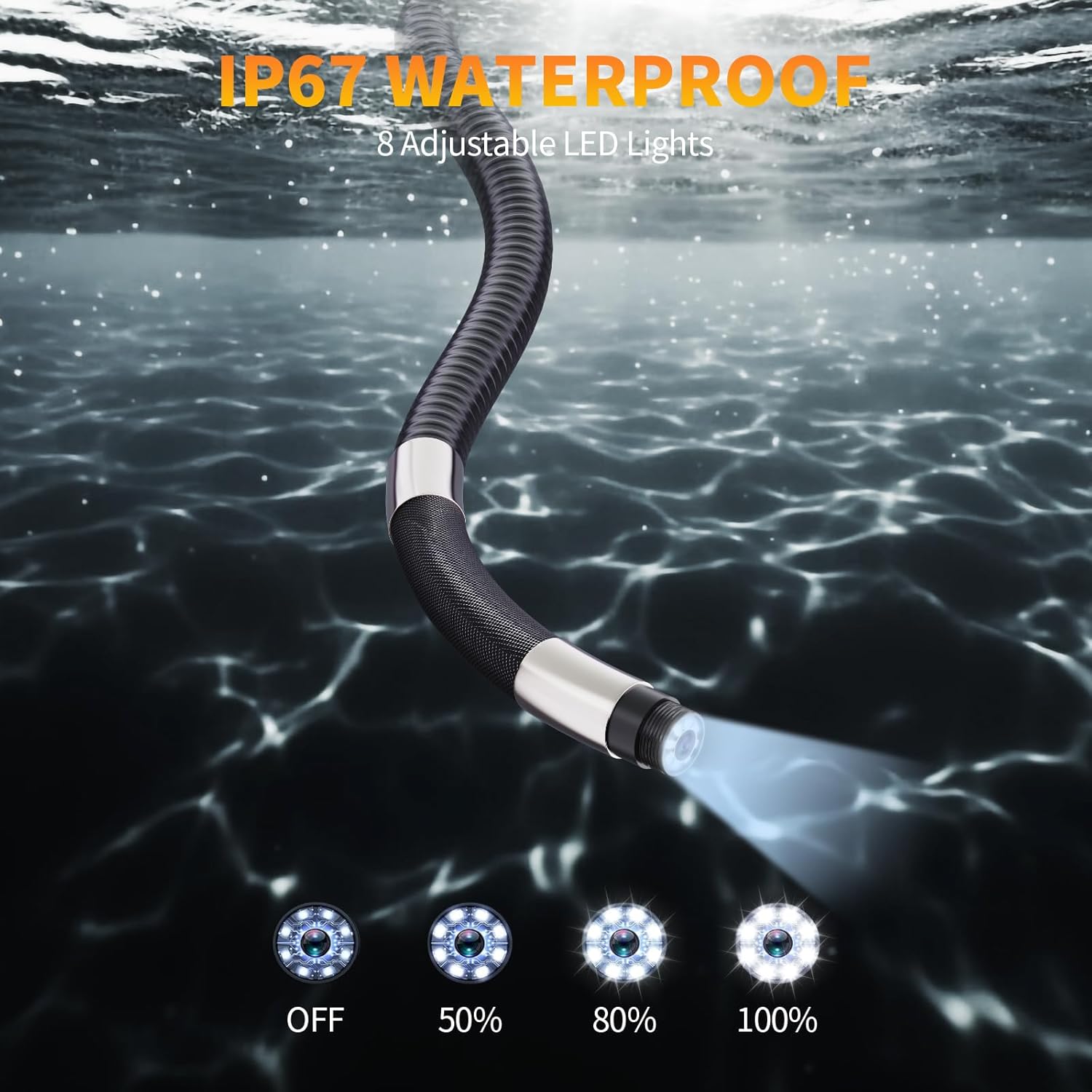 Die Hopefox Endoskopkamera ist eine praktische Lösung für Inspektionen in schwer zugänglichen Bereichen. Mit einer Bildschirmgröße von 4,3 Zoll und einer Auflösung von 1080P bietet sie klare und detaillierte Bilder. Die Kamera ist IP67 wasserdicht, was sie ideal für den Einsatz in feuchten Umgebungen macht. Dank der integrierten 8 LEDs können Sie auch bei schlechten Lichtverhältnissen gut sehen.