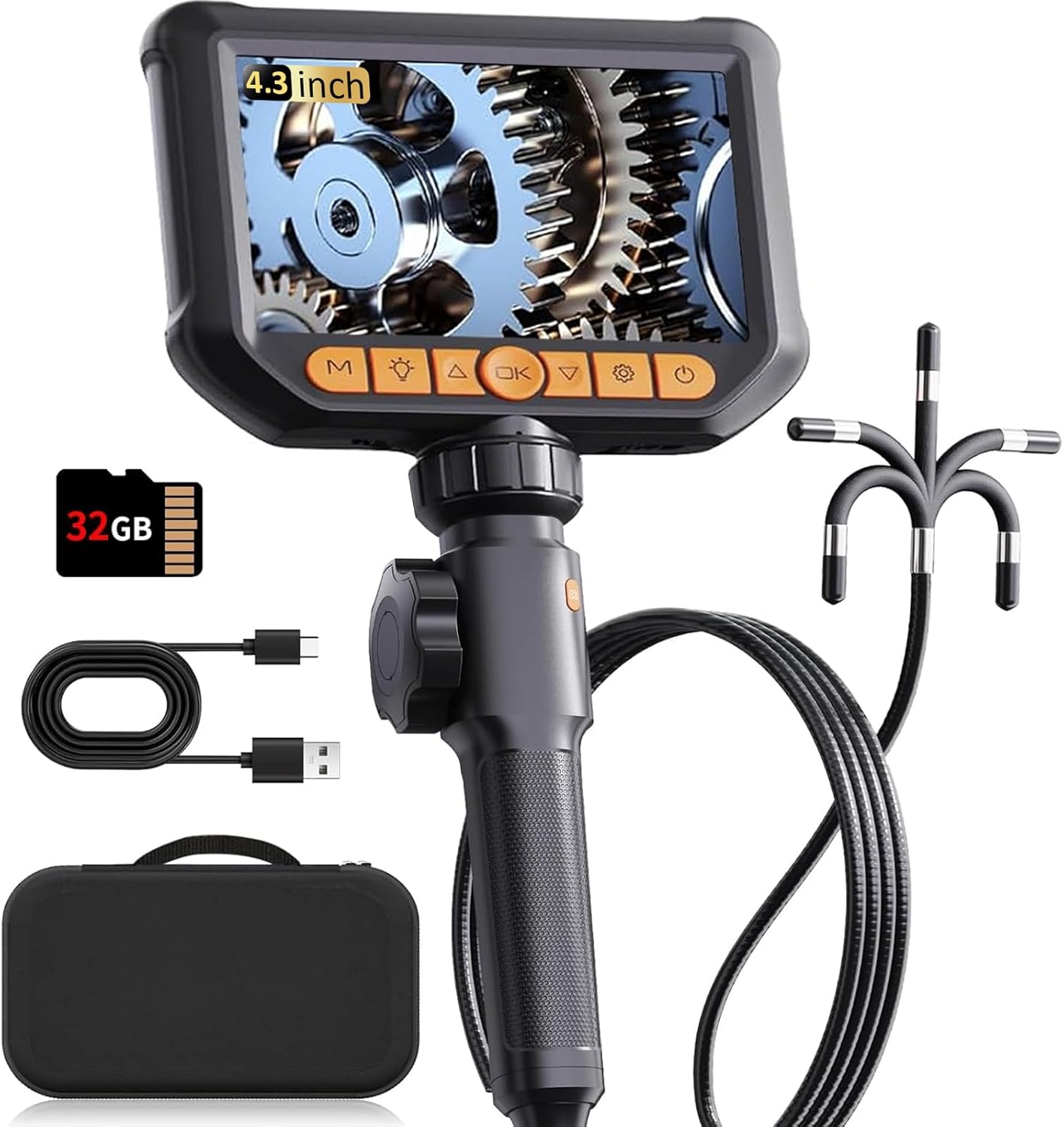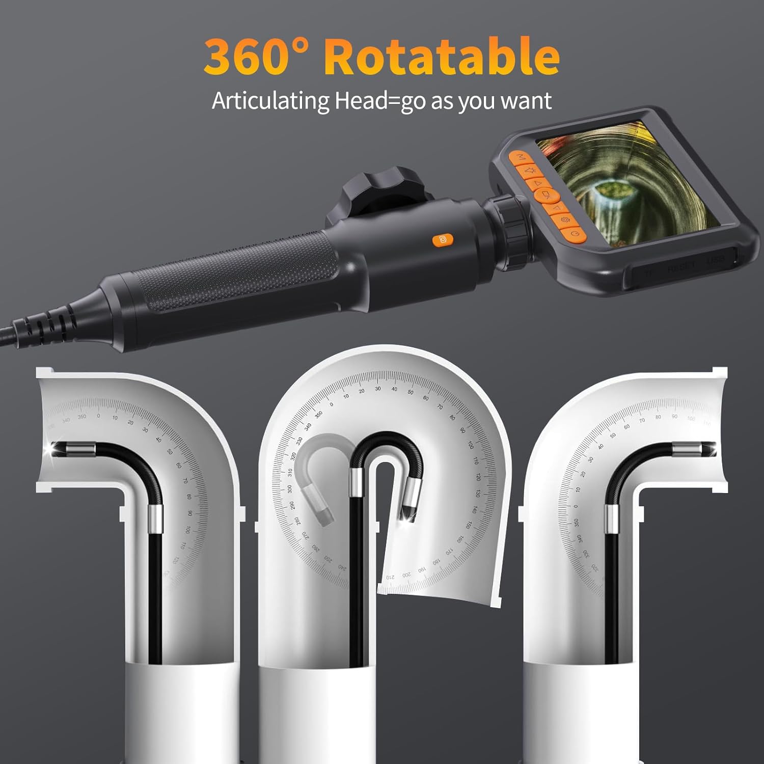 Endoskopkamera mit Licht, Hopefox Drehbare Inspektionskamera 4,3 Zoll 1080P IP67 Wasserdichter Rohrkamerakanal Endoskopkamera mit 8 LEDs, 32G-Karte und Tragetasche 1,5 m