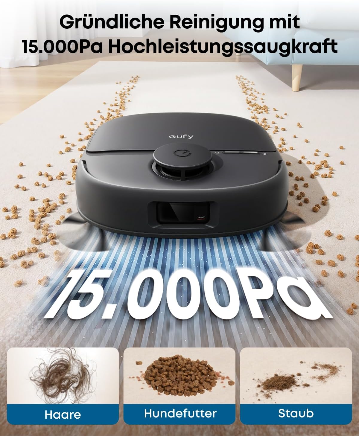 - Turbo-Saugleistung von 15.000 Pa
