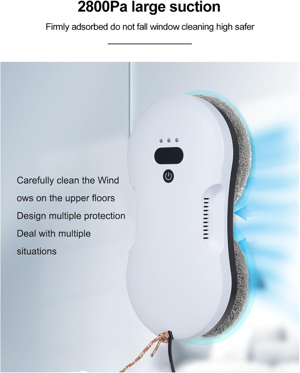 Fafeicy Fensterputzroboter, intelligentes, leistungsstarkes 2800-PA-Saugwassersprühsystem, 3 Reinigungsmodi, automatische Eckenerkennung für das Home Office, weißes ABS, 11,61 x 5,71 (EU-Stecker)