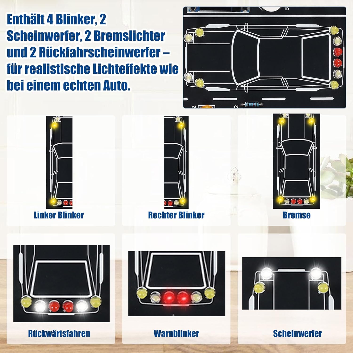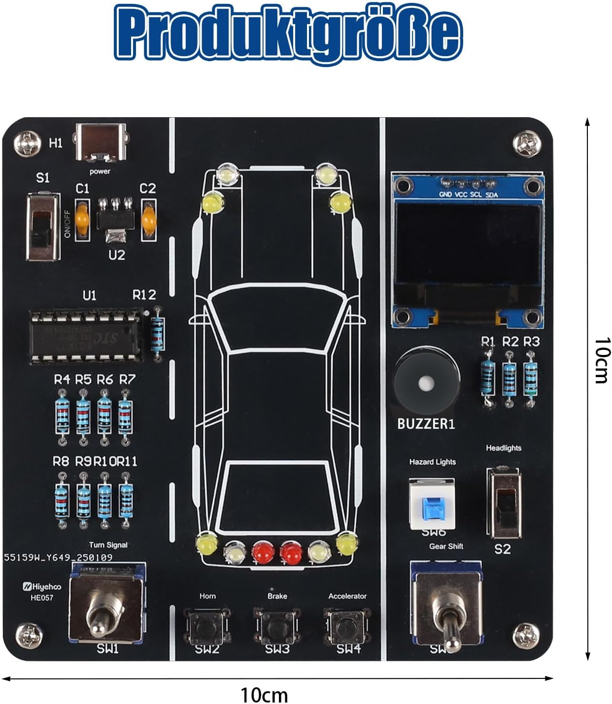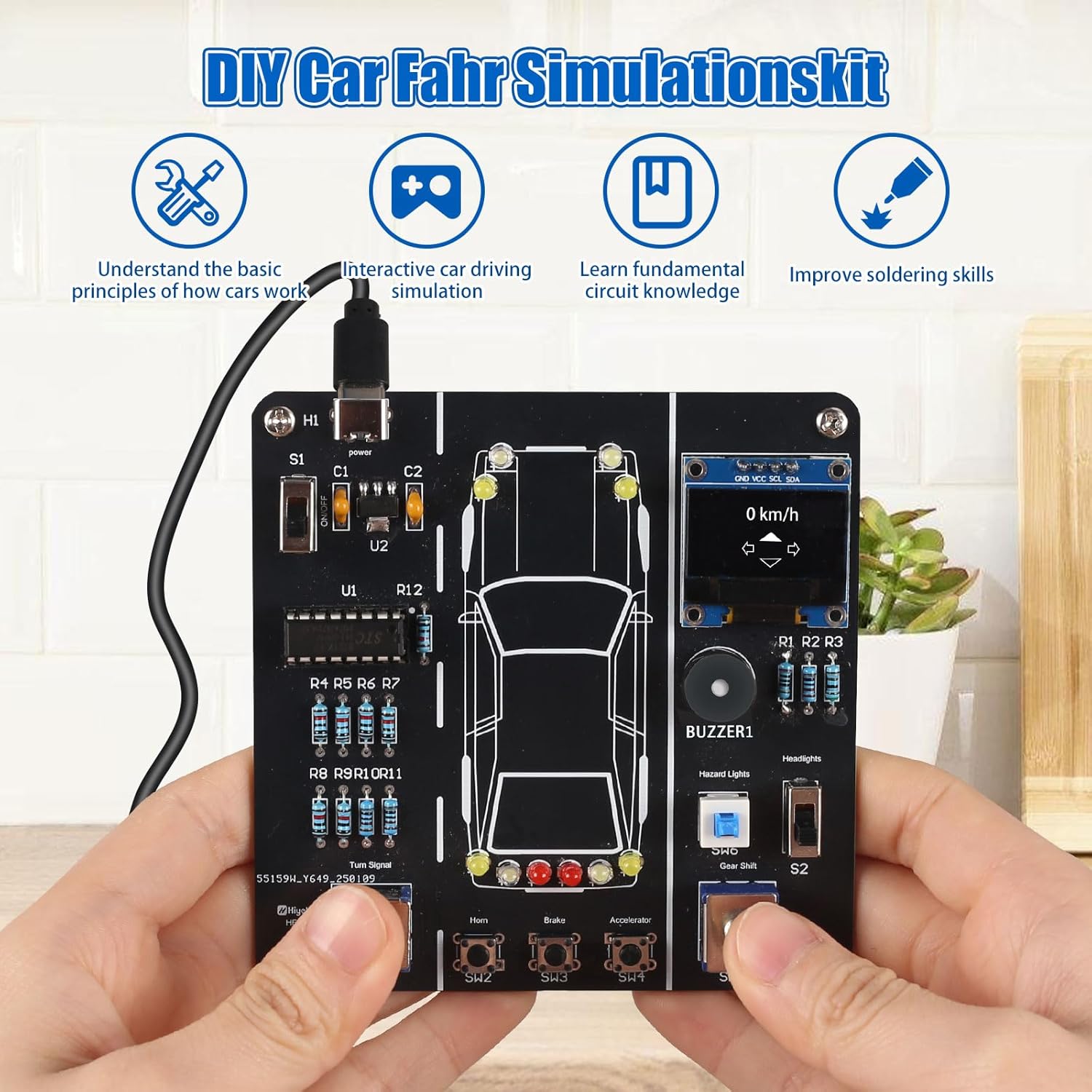 Der Fahrsimulator-Lötbausatz ist ein unterhaltsames und lehrreiches DIY-Projekt, das sich ideal für Zuhause oder in der Schule eignet. Mit einer Lötzeit von ca. einer Stunde können Nutzer grundlegende Schaltungsprinzipien erlernen und gleichzeitig Spaß haben. Das Kit bietet verschiedene Funktionen, die durch Kippschalter gesteuert werden, wie z.B. Blinklichter, Fernlicht und Abblendlicht. Hier sind einige der wesentlichen Merkmale: