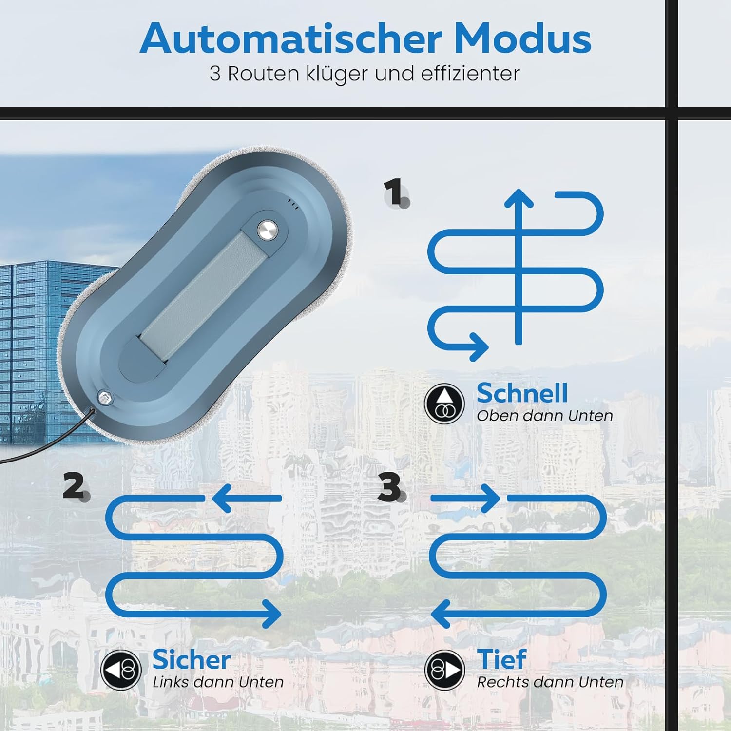 Durch die Automatisierung der Reinigung sparen Sie Zeit und Mühe, während der Fensterputzroboter die Arbeit für Sie übernimmt.