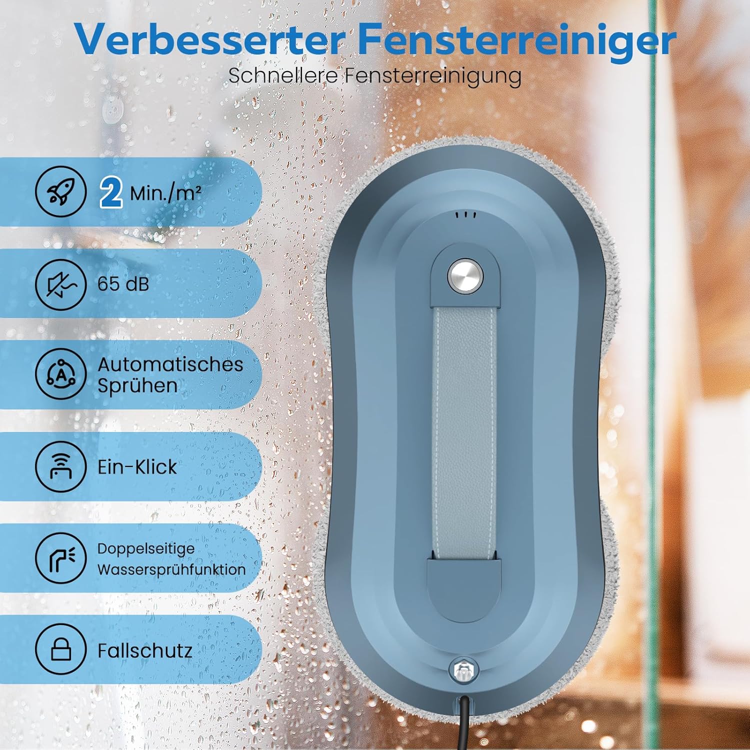 Fensterputzroboter, 5600Pa automatischer Fensterroboter mit Wasserstrahl, Fensterroboter mit Sprühfunktion, Fensterputzroboter, elektrischer Fensterputzroboter, rahmenloses Fenster