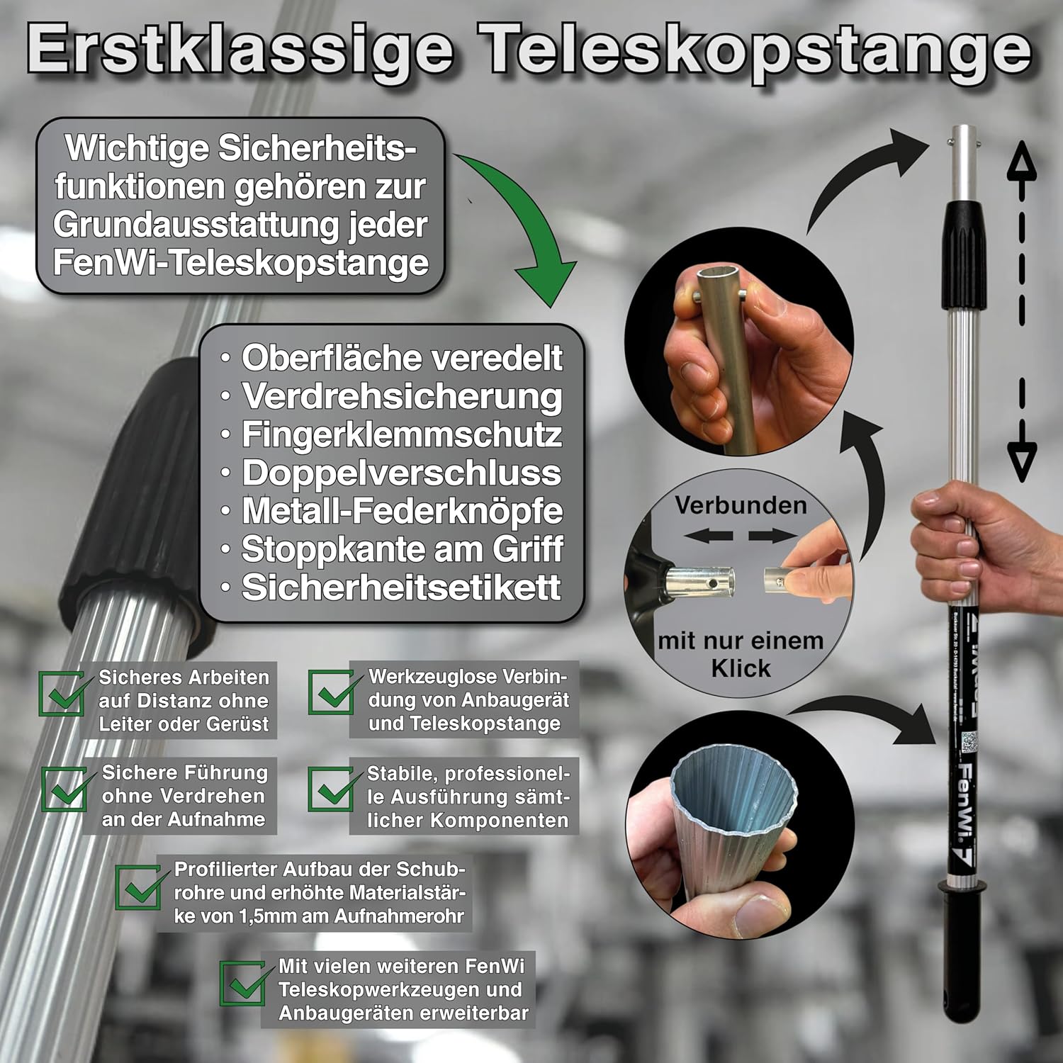 - Teleskopstange für einfachen Zugang