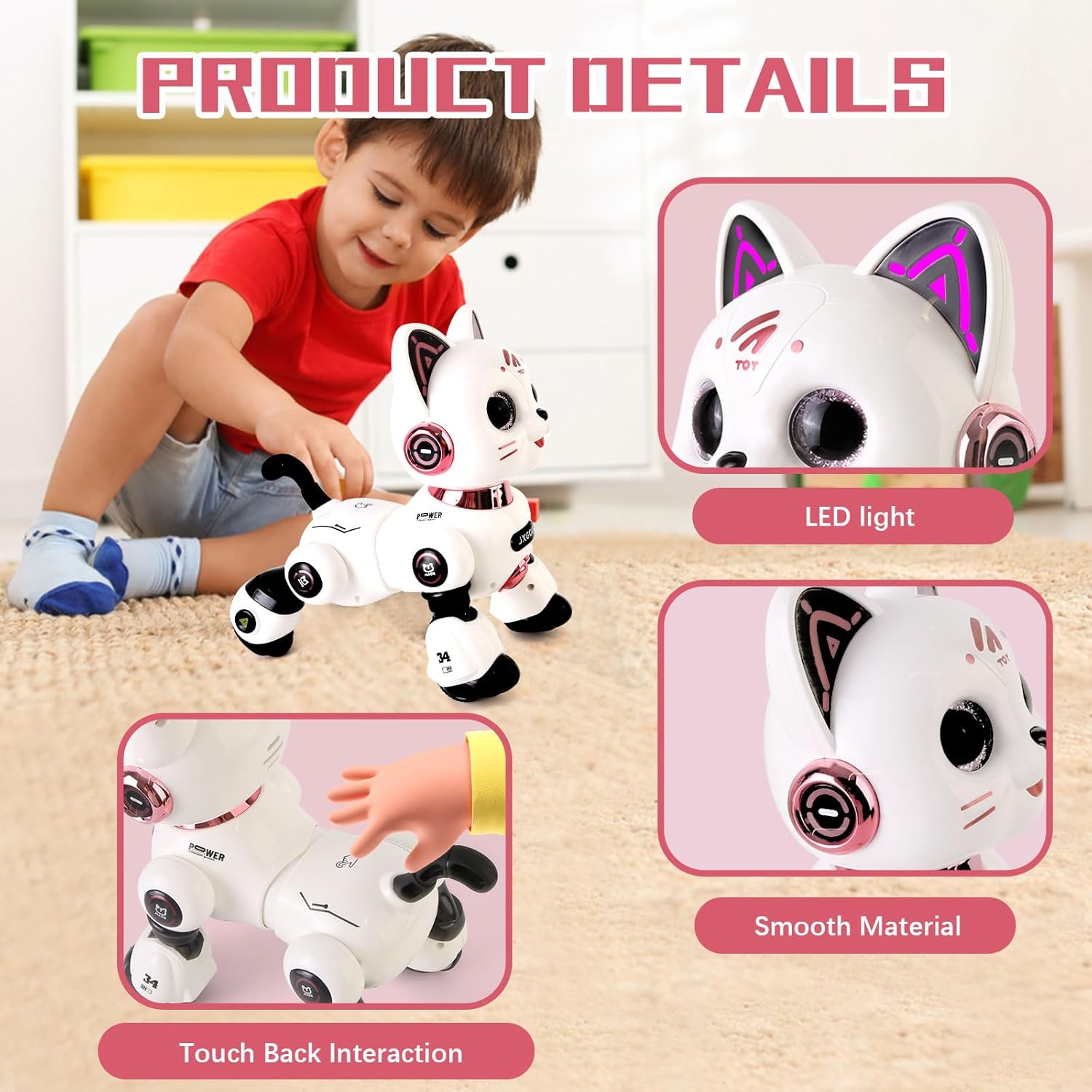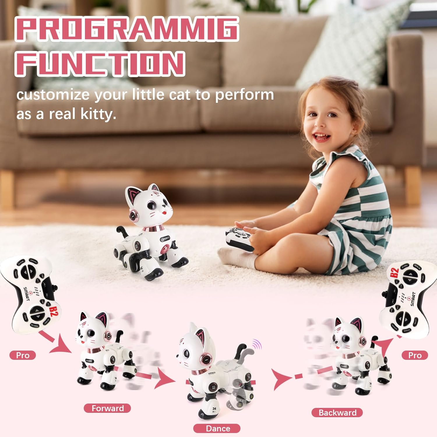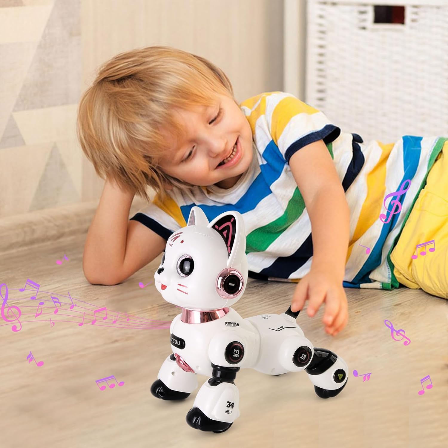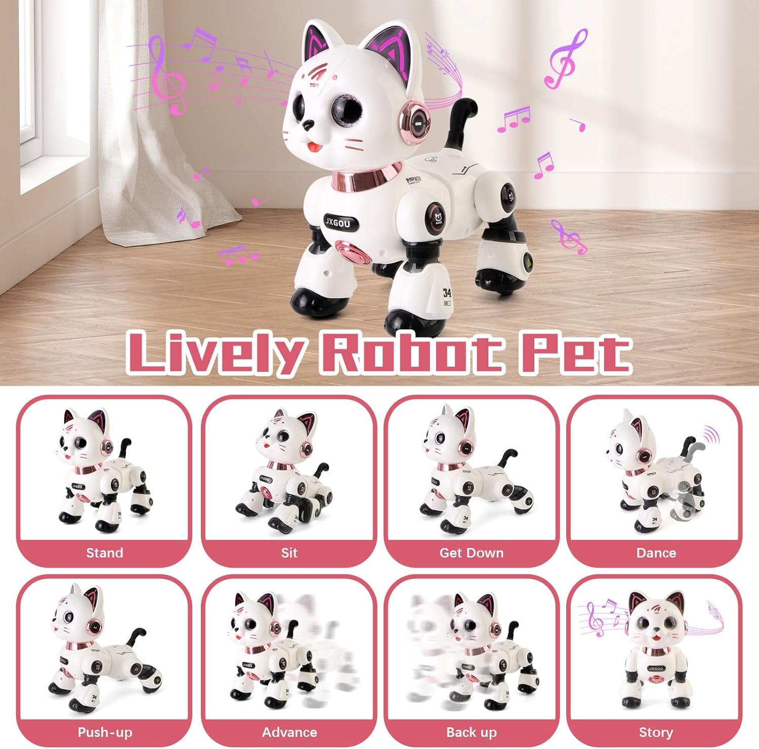 Es handelt sich um eine interaktive, intelligente Roboterkatze, die mit Licht und Ton ausgestattet ist und für Kinder ab 8 Jahren geeignet ist.