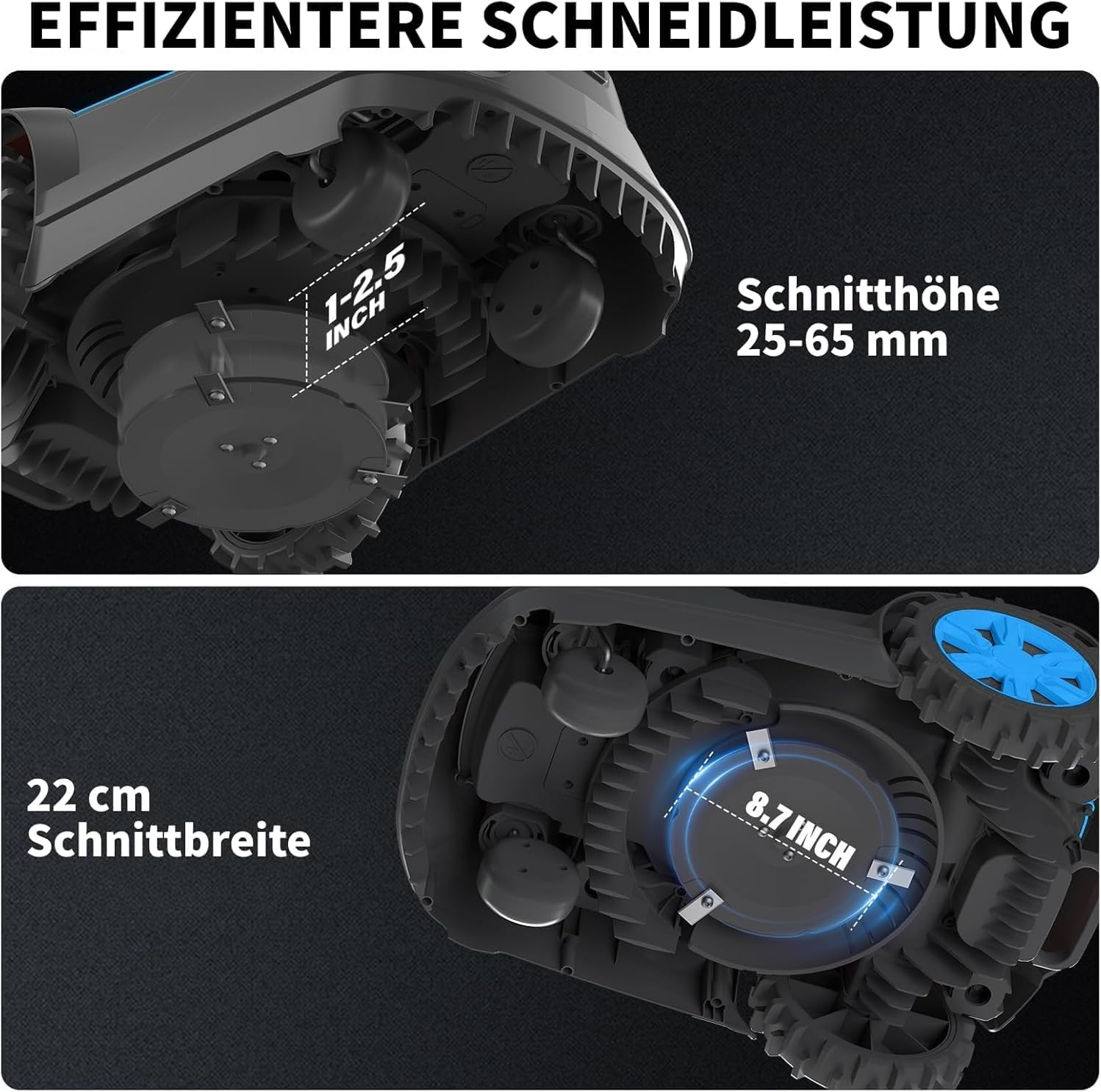 LEADZM Mähroboter mit Begrenzungskabel, Rasenmäherroboter, bis zu 1200 m², Bluetooth & WLAN, selbstladend, Schnitthöhe 2,5-6,5 cm, 47 % Steigung, 22 cm Schnittbreite, IPX5 wasserdicht