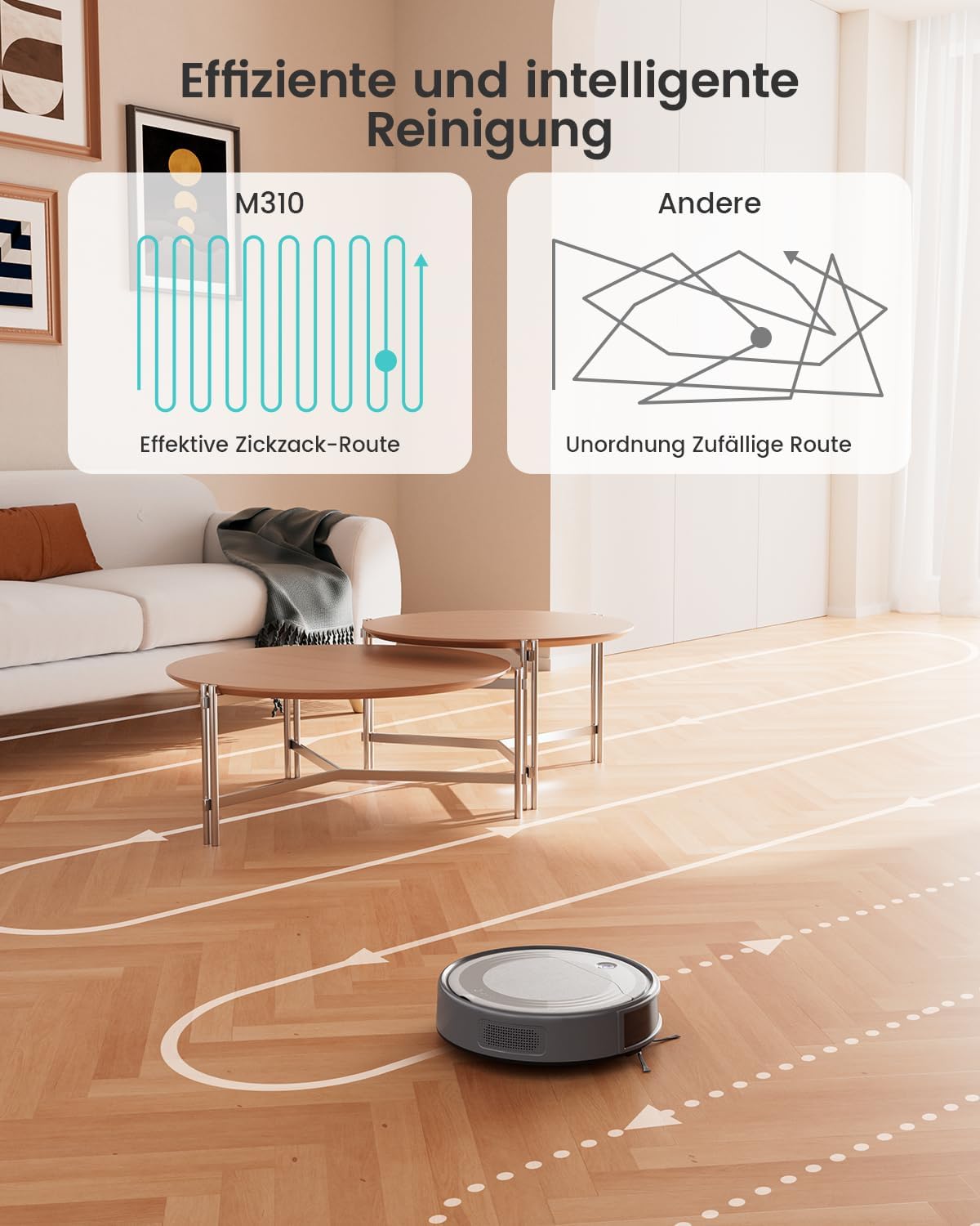 LEFANT M310 Saugroboter, Saugroboter mit 4500 Pa Saugleistung, 180 Minuten Akkulaufzeit, Hindernisvermeidung, Steuerung per WLAN/App, geeignet für Tierhaare und Hartböden, Grau