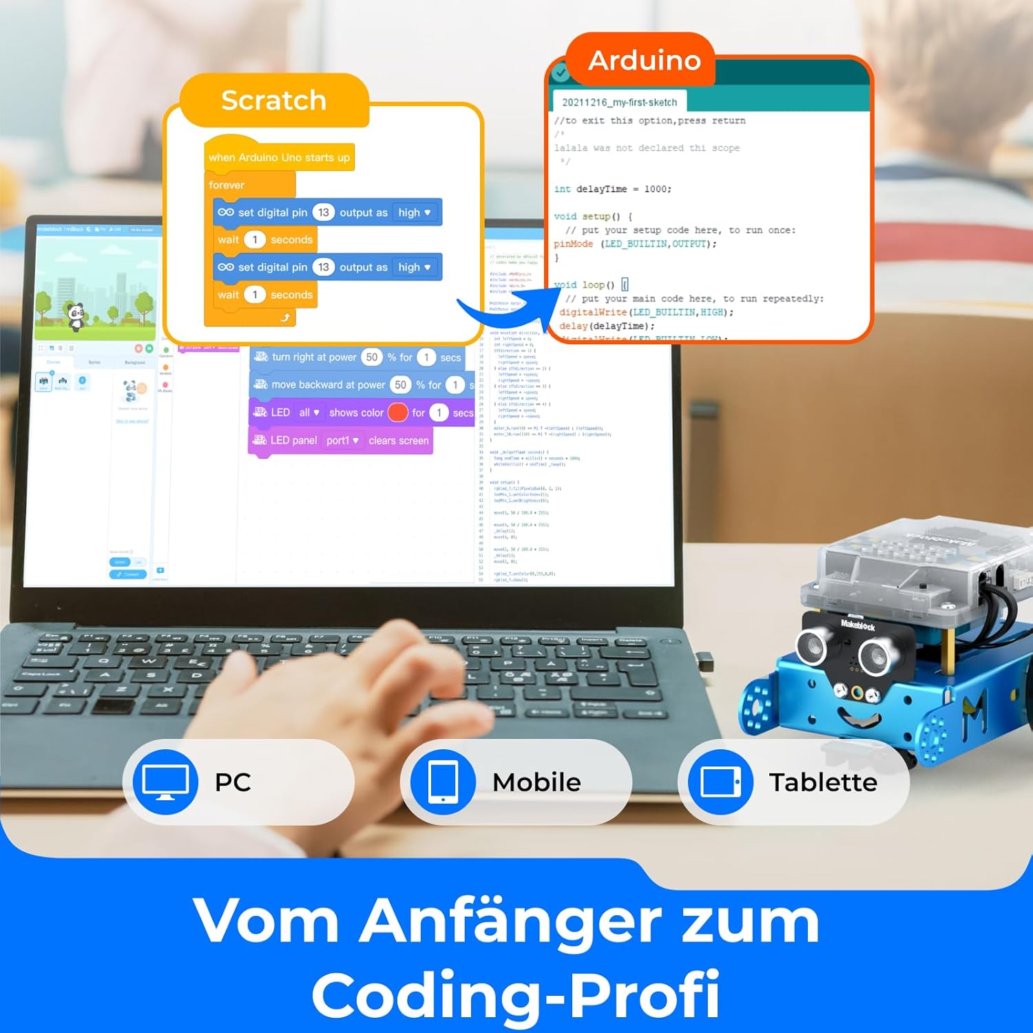 Mit Scratch und Arduino können Kinder ihre eigenen Programme erstellen und den Roboter nach ihren Vorstellungen steuern. Dies macht den mBot zu einem idealen Geschenk für technikbegeisterte Kinder.