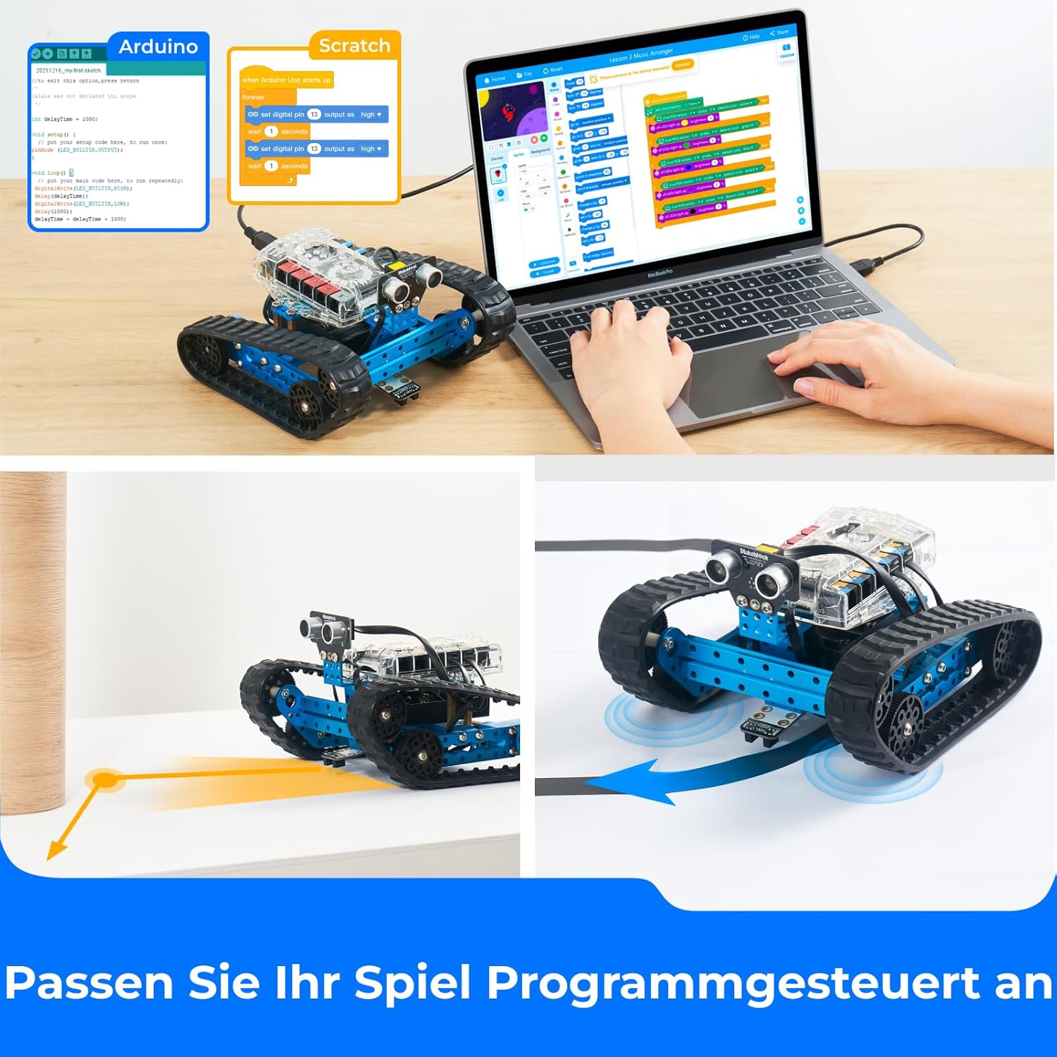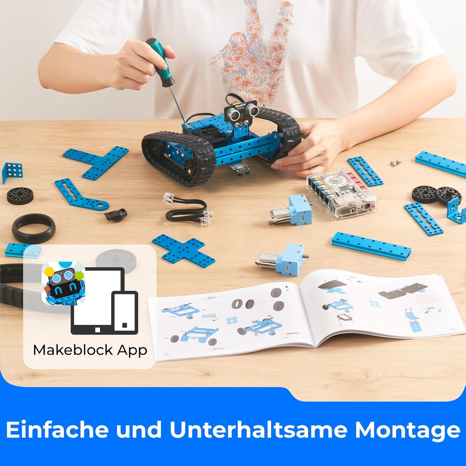 Der Roboter wird über die Me Auriga-Plattform gesteuert und bietet eine Bluetooth-Verbindung für eine einfache Programmierung. Kinder können spielerisch lernen, wie man Code schreibt und ihre eigenen Programme erstellt. Der Bausatz fördert nicht nur technisches Verständnis, sondern auch Kreativität und Problemlösungsfähigkeiten.