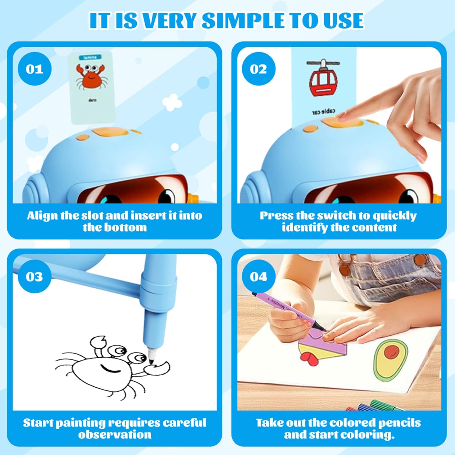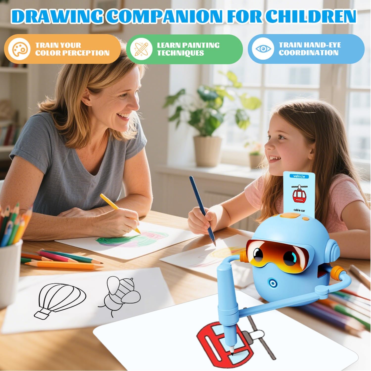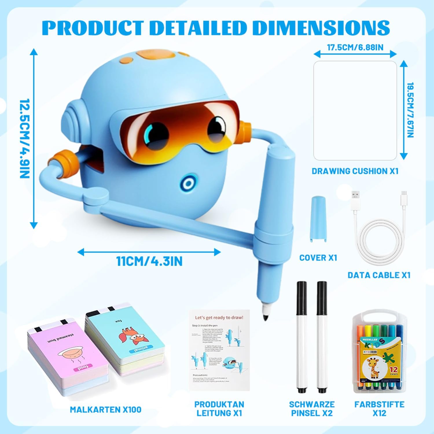 Malroboter für Kinder, Malroboter für Kinder im Alter von 3 4 5 6 7 8 9 Jahren, sprachgesteuerter pädagogischer Zeichenroboter mit 100 Karten, 14 Stiften und Musik, für Jungen- und Mädchengeburtstage (blau)