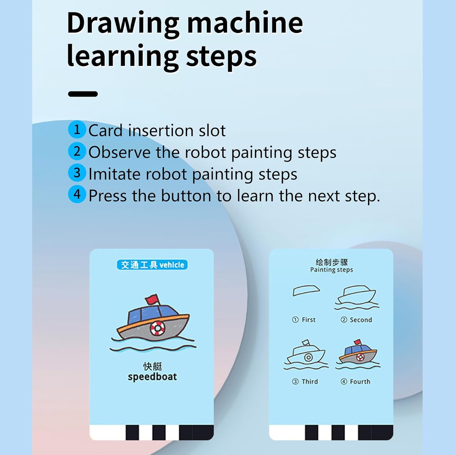 Malroboter für Kinder, Zeichenroboter für Kinder ab 3 4 5 6 7 8 Jahren, Sprachinteraktiver Zeichenroboter mit 100 Karten und 14 Buntstiften, Lernspielzeuggeschenk für Jungen Mädchen