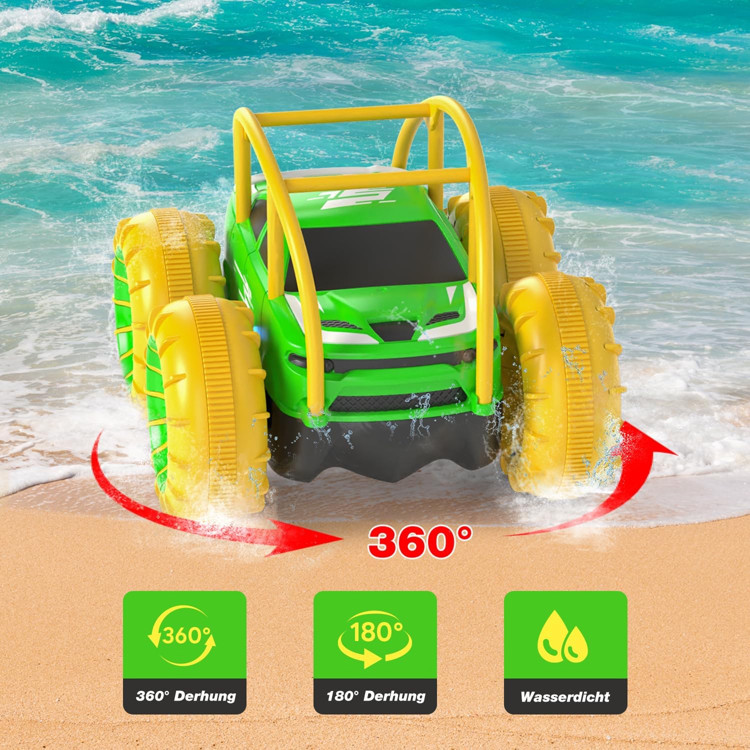 Das MaxTronic Direct Charge ferngesteuerte Auto ist ein ideales Spielzeug für Kinder ab 3 Jahren. Es bietet eine aufregende Möglichkeit, die Natur zu erkunden und gleichzeitig Spaß zu haben. Dieses amphibische Fahrzeug kann sowohl an Land als auch im Wasser eingesetzt werden, was es zu einem vielseitigen Spielzeug macht.
