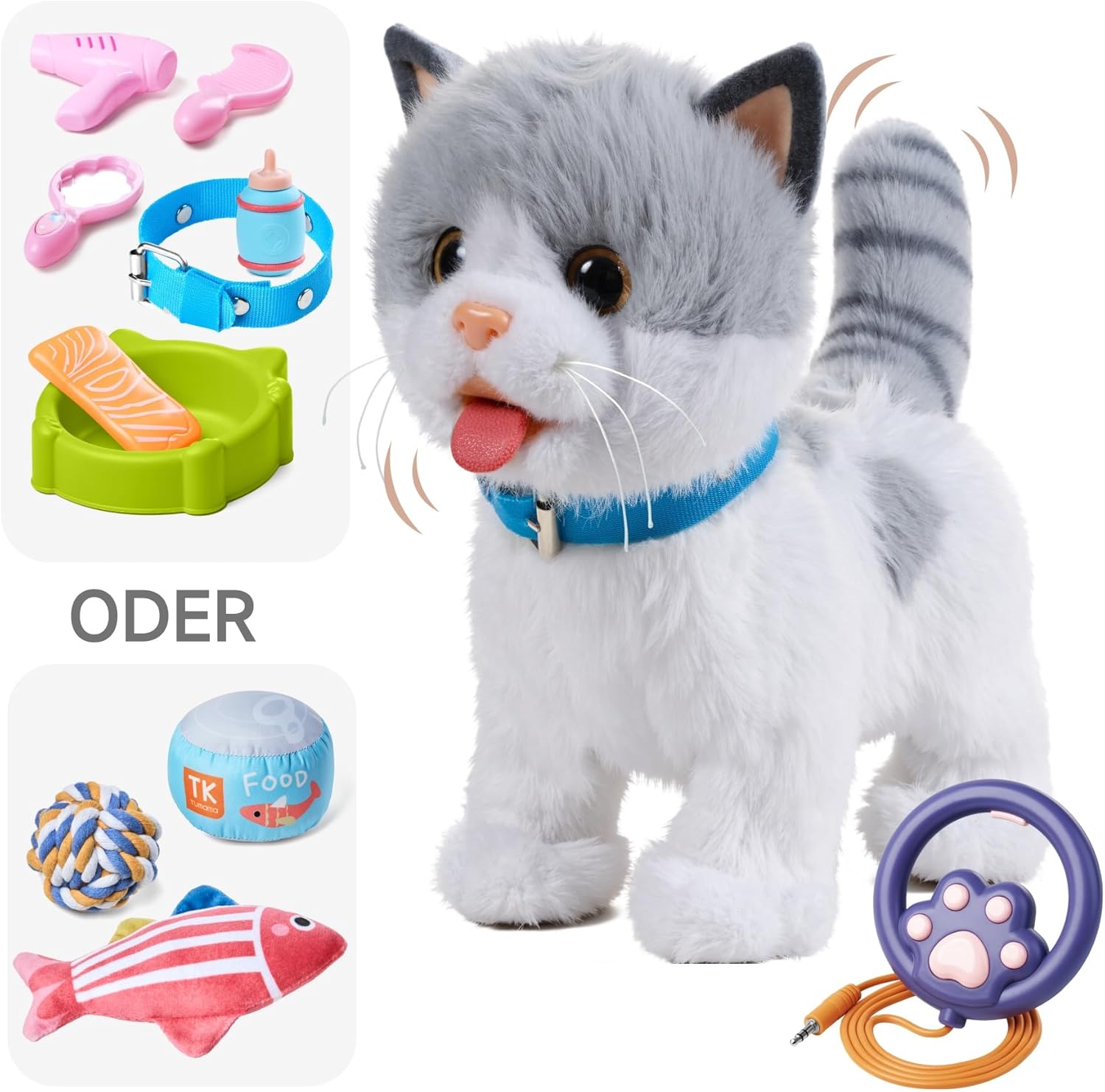 OR OR TU Katzenspielzeug für Kinder, Plüschkätzchen, elektronische Haustiere mit ferngesteuertem, interaktivem Spielzeug, Katze läuft und bellt, leckt Katze, Kinderspielzeug für Kinder, Geschenk