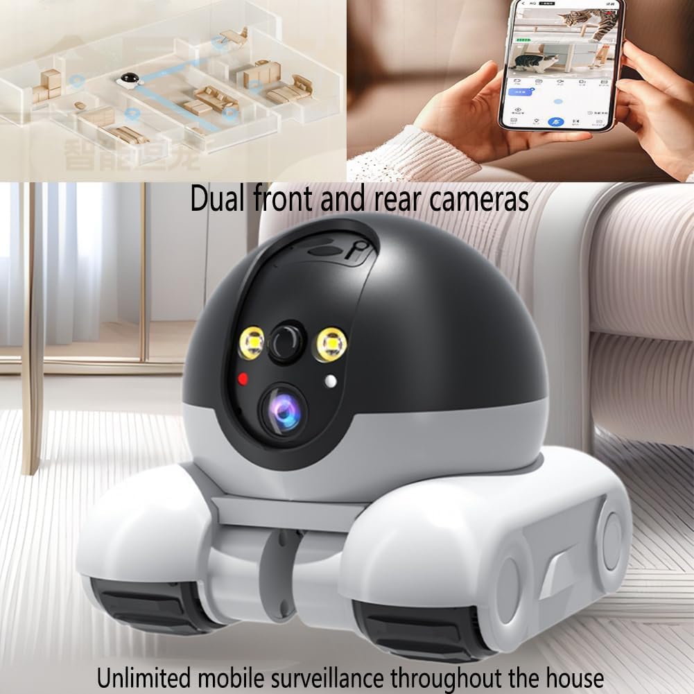 Patrol Buddy Roboterkamera, Patrol Bot, Roboterkameras auf Rädern, 360°-Ansicht, Haustierkamera für den Innenbereich mit 2-Wege-Kommunikation, HD-Nachtsicht, App-Fernbedienung, Nachtsicht (WiFi)