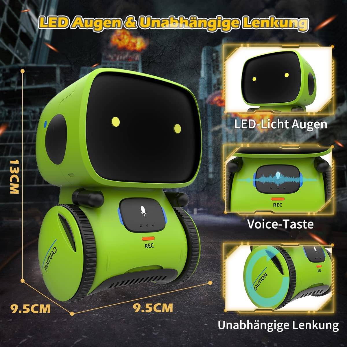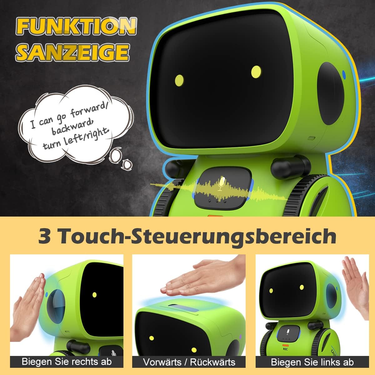 REMOKING Intelligentes Roboter-Kinderspielzeug, interaktives Roboter-Lernspielzeug, Geschenke für Jungen und Mädchen, Touch-Steuerung, Sprachaufzeichnung, Sprachaufzeichnung, Sprechen, Tanzen, Musik, Grün