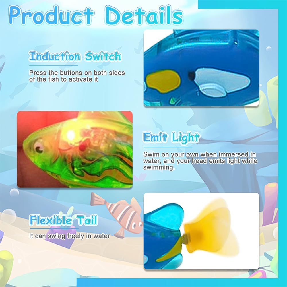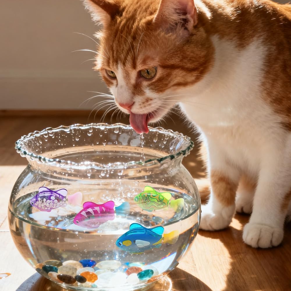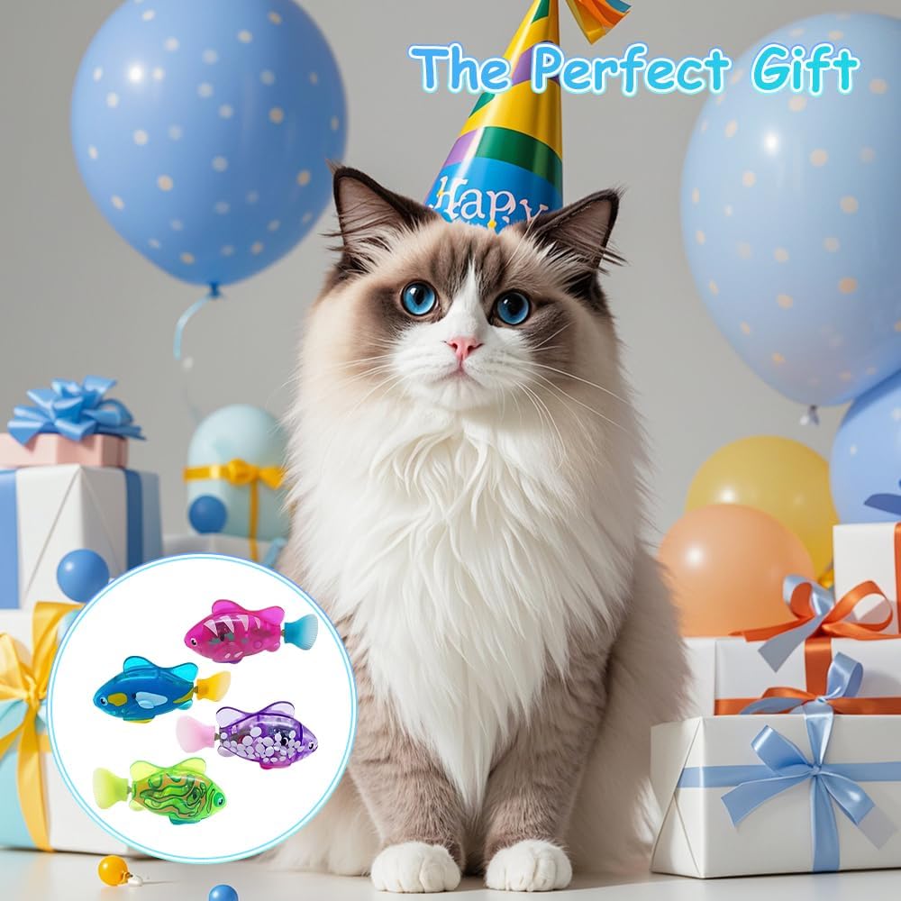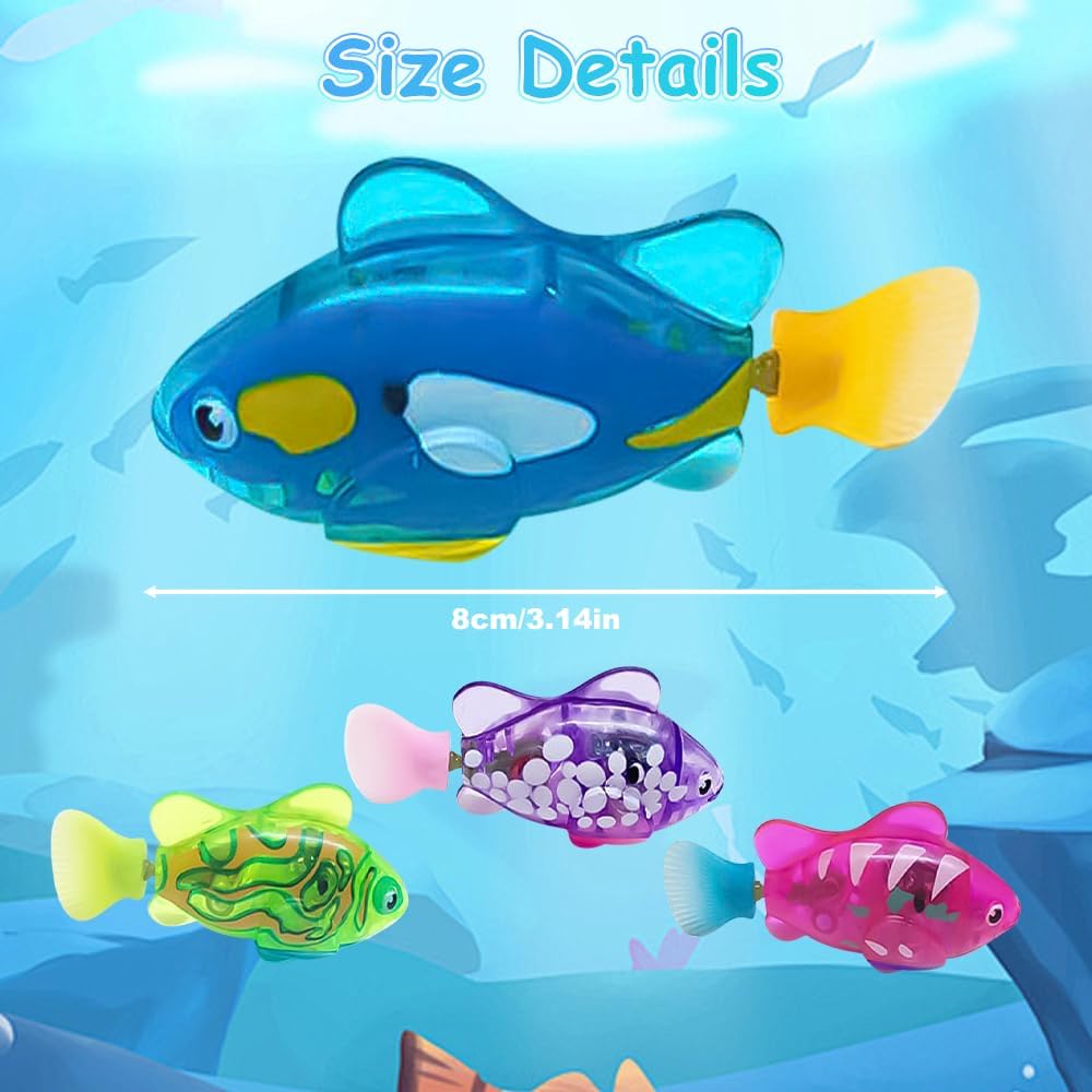 Roboterfisch, 4 Stück, Robofisch, elektrischer Fisch mit leuchtendem, elektronischem Haustierfisch, Katzenspielzeug, elektrisches, schwimmendes Fischspielzeug für Poolspielzeug, batteriebetrieben