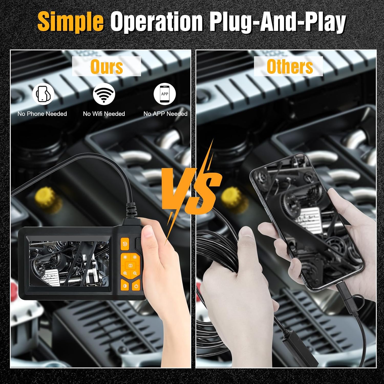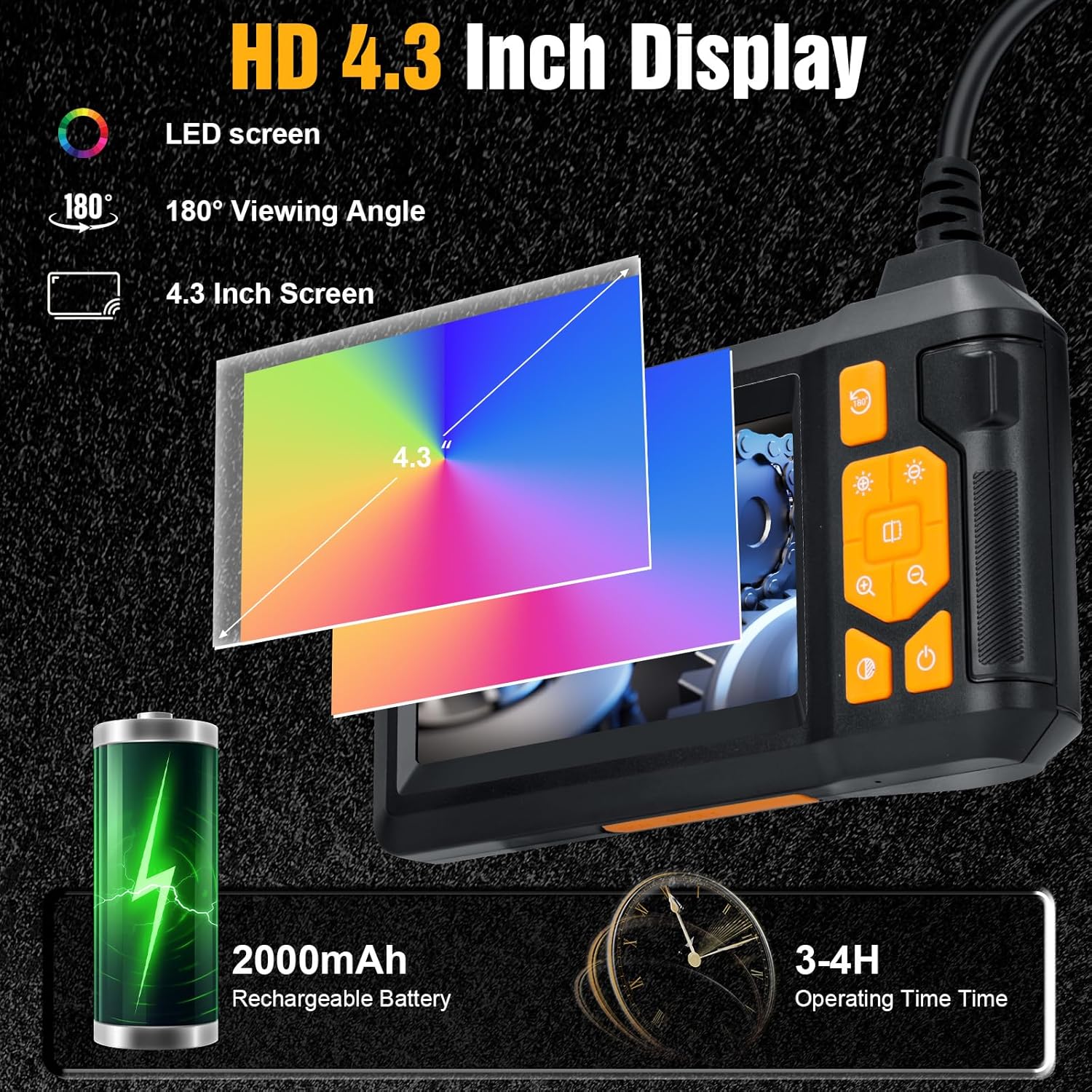 Romon Endoskopkamera mit Licht, Endoskop 1080P HD-Röhrenkamera, Kanalkamera mit 8 LEDs, 4,3-Zoll-IPS-IP67-Bildschirm, 8-mm-Schlangenkamera, Inspektionskamera, Live-Bild, halbstarres Kabel, 16,4 Fuß