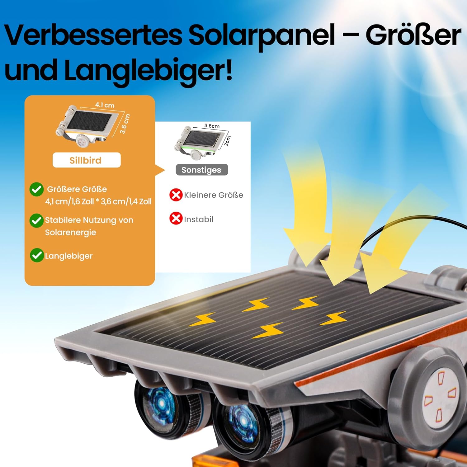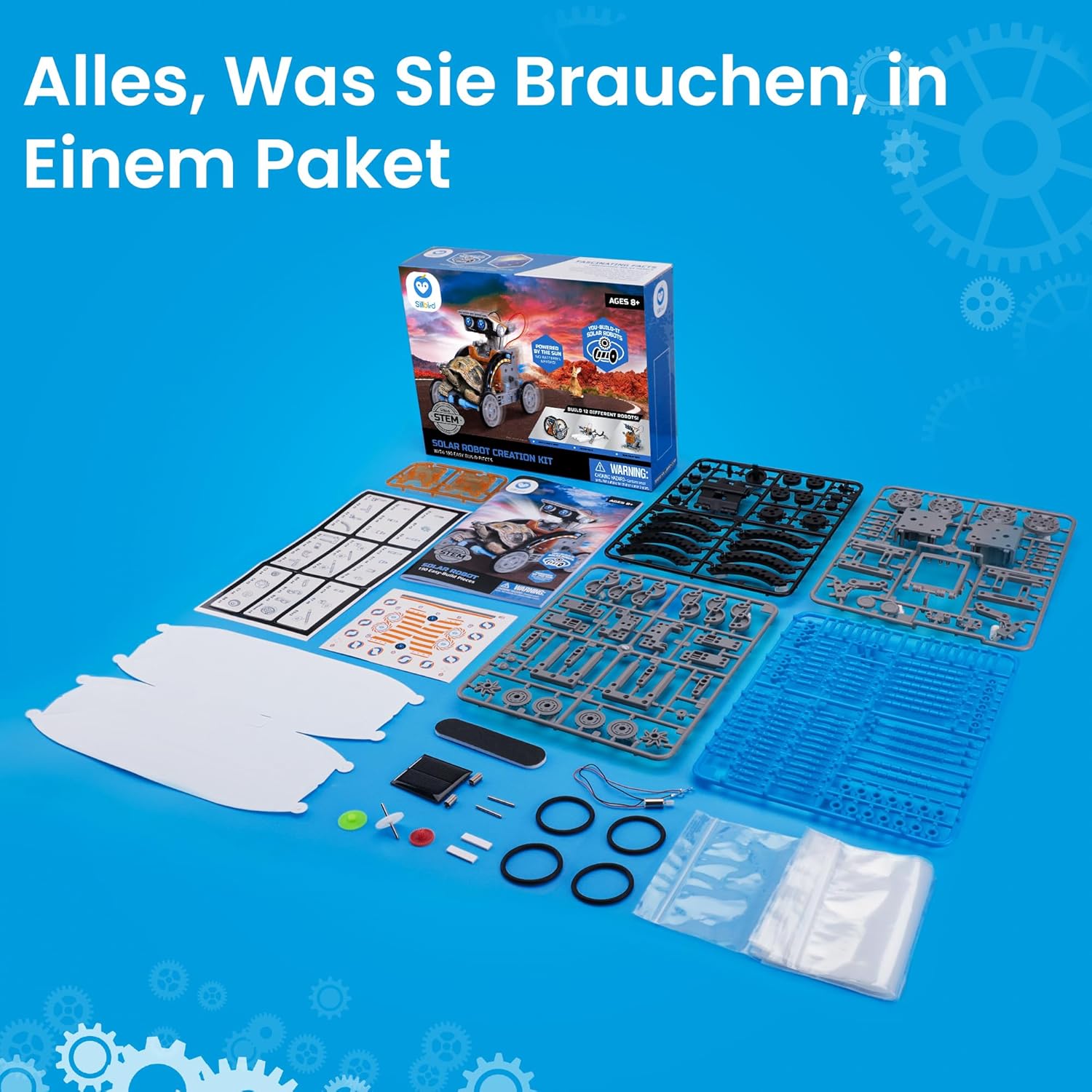 Sillbird Solarroboter Kinderspielzeug ab 8 Jahren, 12-in-1 STEM-Bauset, 190 Teile, Lernspielzeug, Geschenk für Jungen Mädchen ab 8+ Jahren, angetrieben durch Solarenergie