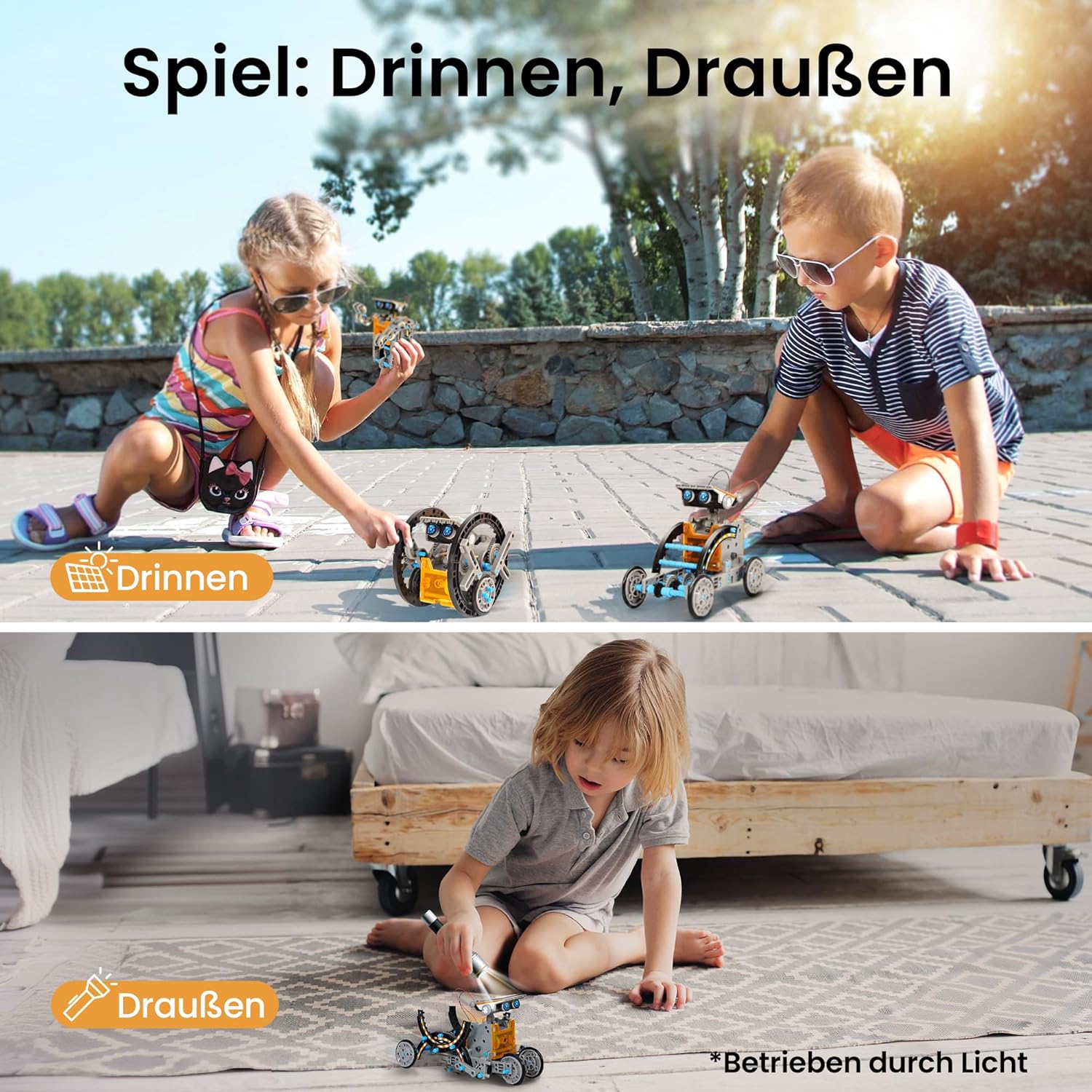 Das Sillbird Solarroboter Kinderspielzeug ist ein spannendes 12-in-1 STEM-Bauset, das aus 190 Teilen besteht. Es ermöglicht Kindern ab 8 Jahren, verschiedene Arten von Robotern zu bauen, die sich sowohl an Land als auch auf dem Wasser bewegen können. Dieses Lernspielzeug fördert die praktischen Fähigkeiten und das technische Verständnis der Kinder. Das Bauset bietet zwei Schwierigkeitsstufen, sodass sowohl jüngere als auch ältere Kinder herausgefordert werden. Ein besonderes Merkmal ist, dass der Roboter durch Solarenergie betrieben wird, was bedeutet, dass keine Batterien benötigt werden.