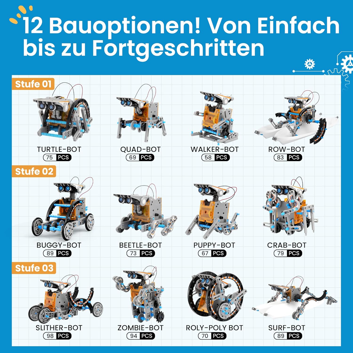 - 12 verschiedene Roboterarten