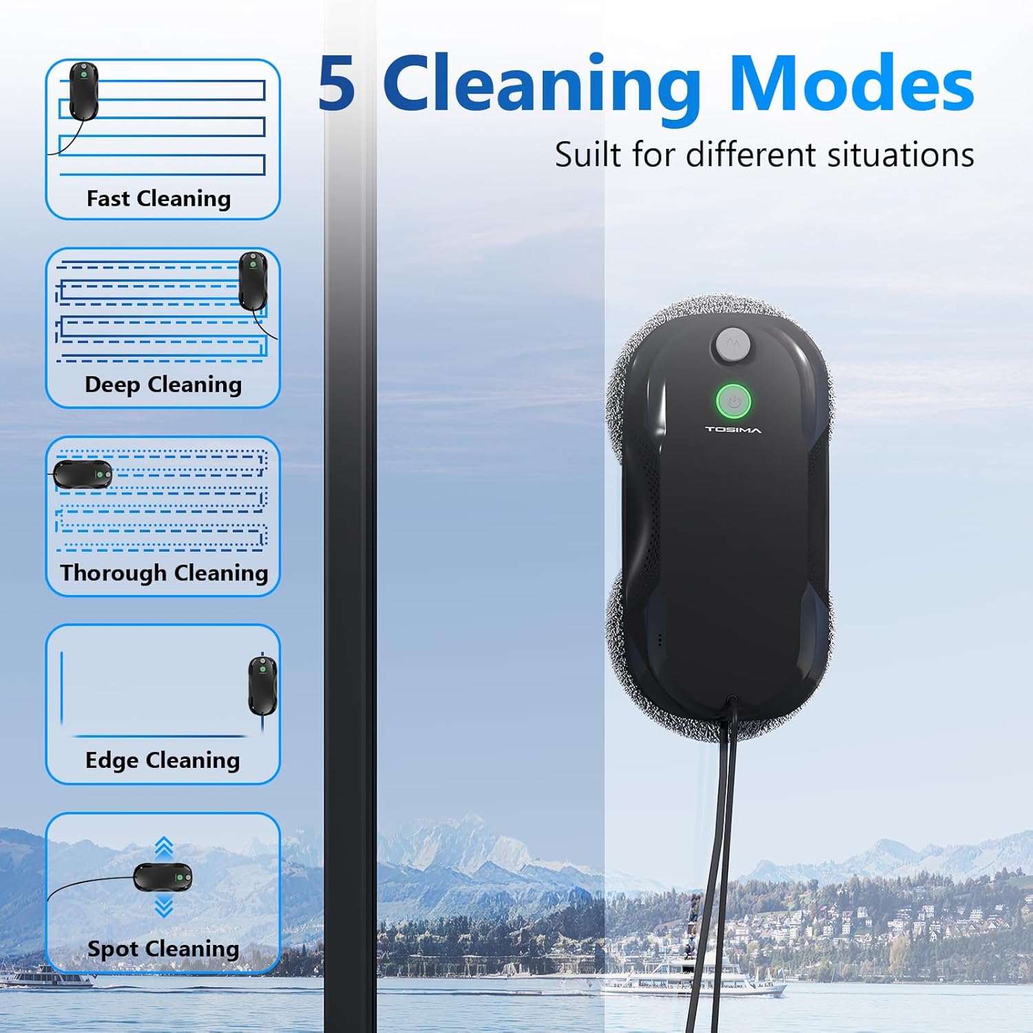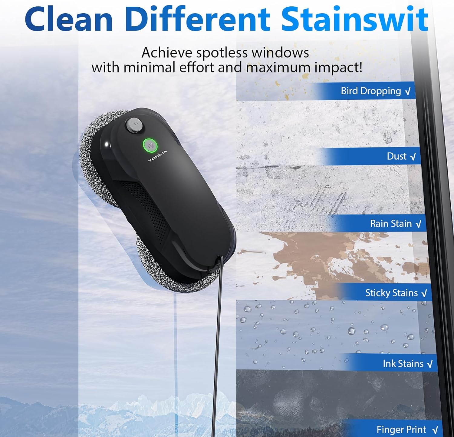 Der Tosima Fensterputzroboter ist eine praktische Lösung für die mühelose Reinigung von Glasflächen. Mit seinem bidirektionalen Ultraschall-Zerstäubungswasserstrahl sorgt er für eine gründliche und streifenfreie Reinigung. Der 85 ml Wassertank ermöglicht eine effiziente Nutzung, während die starke Saugkraft dafür sorgt, dass der Roboter sicher an der Oberfläche haftet.