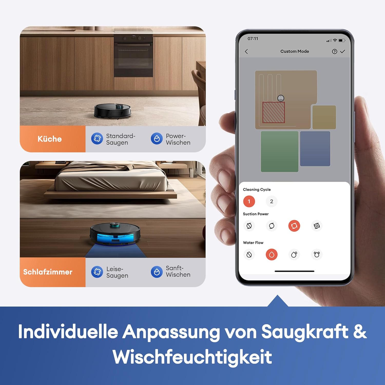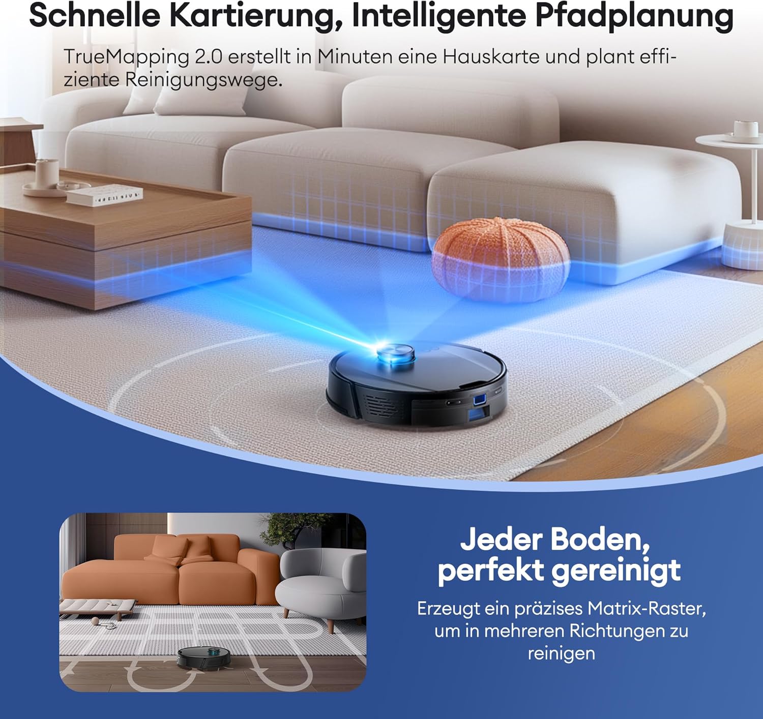 Der Ultenic Roboter-Staubsauger mit Wischfunktion bietet eine umfassende Reinigungslösung für Ihr Zuhause. Mit einer starken Saugleistung von 10000 Pa und einer Wischfunktion ist er ideal für Teppichböden und die Entfernung von Tierhaaren. Die LiDAR-Navigation sorgt für eine präzise Steuerung und effiziente Reinigung. Die App-Steuerung ermöglicht es Ihnen, den Roboter bequem zu programmieren und zu steuern, sodass Sie die Reinigung nach Ihren Bedürfnissen anpassen können.