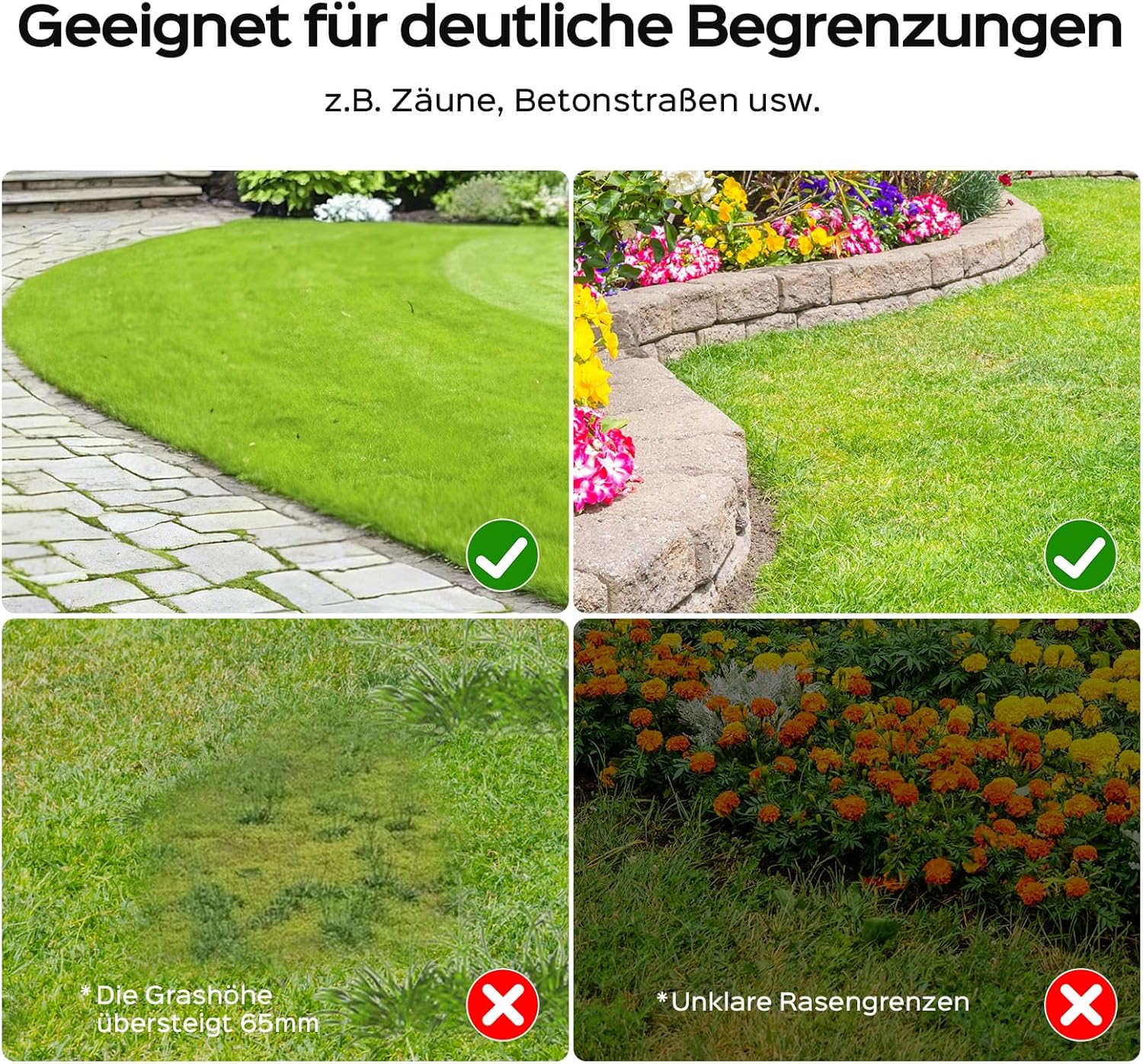 - Einfache Handhabung ohne Begrenzungskabel