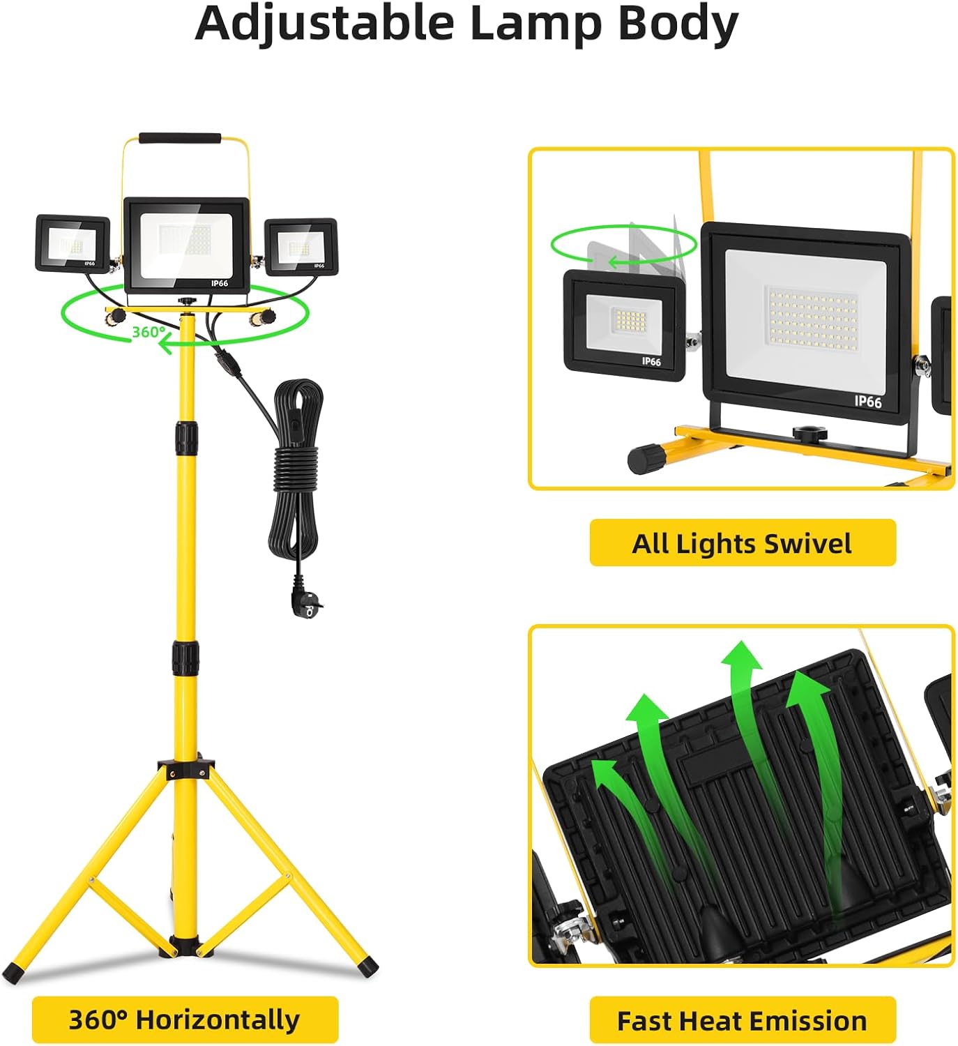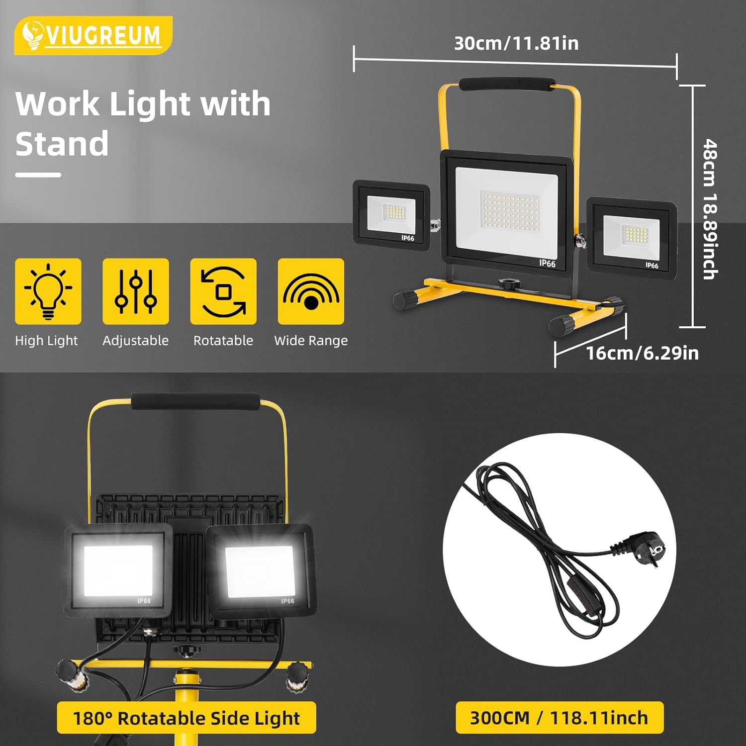 Der Viugreum LED Baustrahler 100W ist eine leistungsstarke Arbeitsleuchte, die sich ideal für Baustellen und andere Anwendungen eignet. Mit einer Helligkeit von 8000 Lumen und einer Farbtemperatur von 6500K sorgt dieser Strahler für optimale Sichtverhältnisse. Der Strahler ist IP65 wasserdicht, was ihn besonders robust und langlebig macht. Zudem ist er mit einem stabilen Ständer ausgestattet, der bis zu 180 cm höhenverstellbar ist.