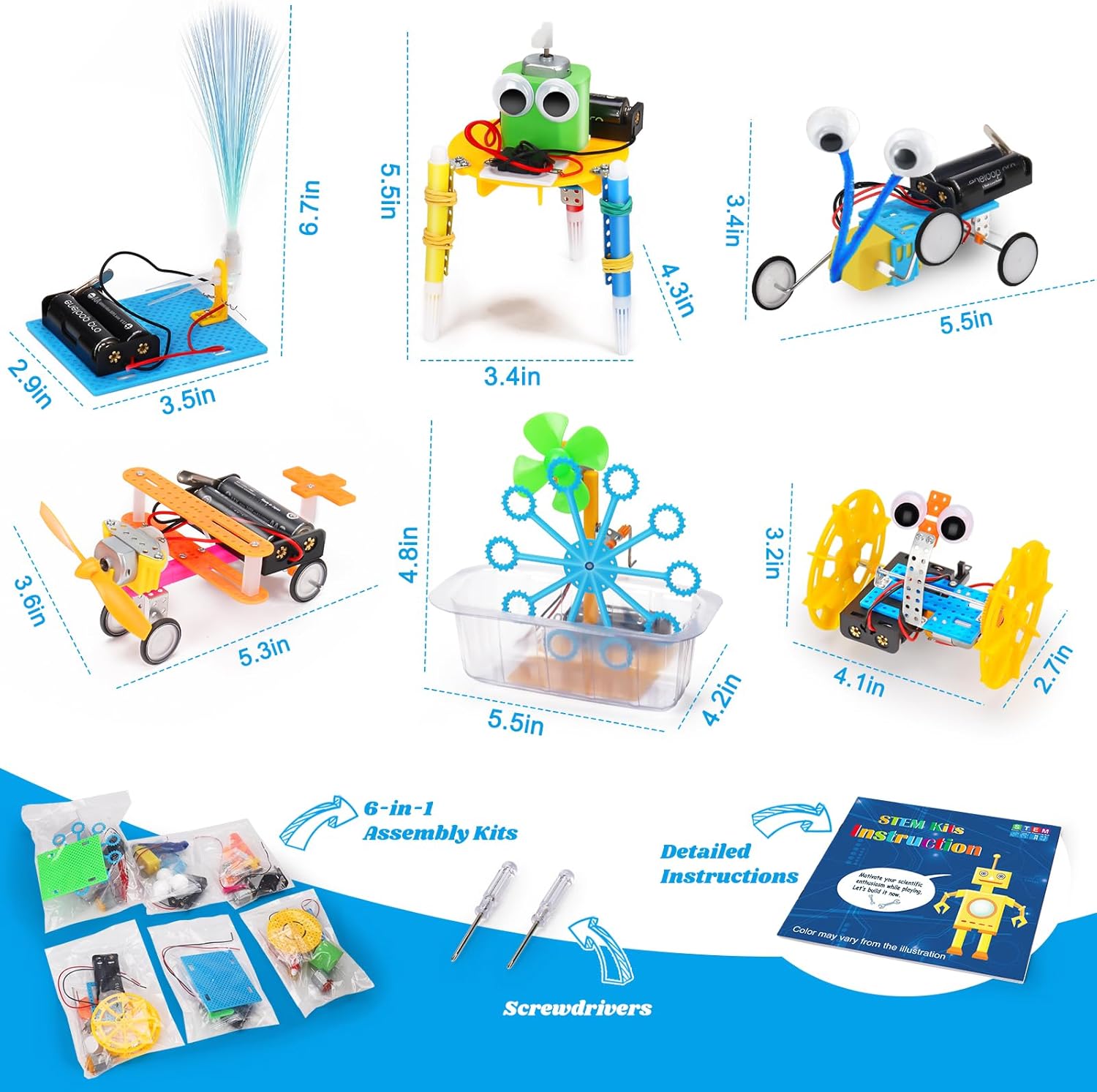 Wissenschaftliches Experimentierset für Kinder 8-12, Elektronikbausatz Roboterbausatz Spielzeug, elektrischer Bausatz, STEM-Experimentierkasten, Aktivitäten, Lernspielzeug ab 8 Jahren, Jungen (6 in 1)