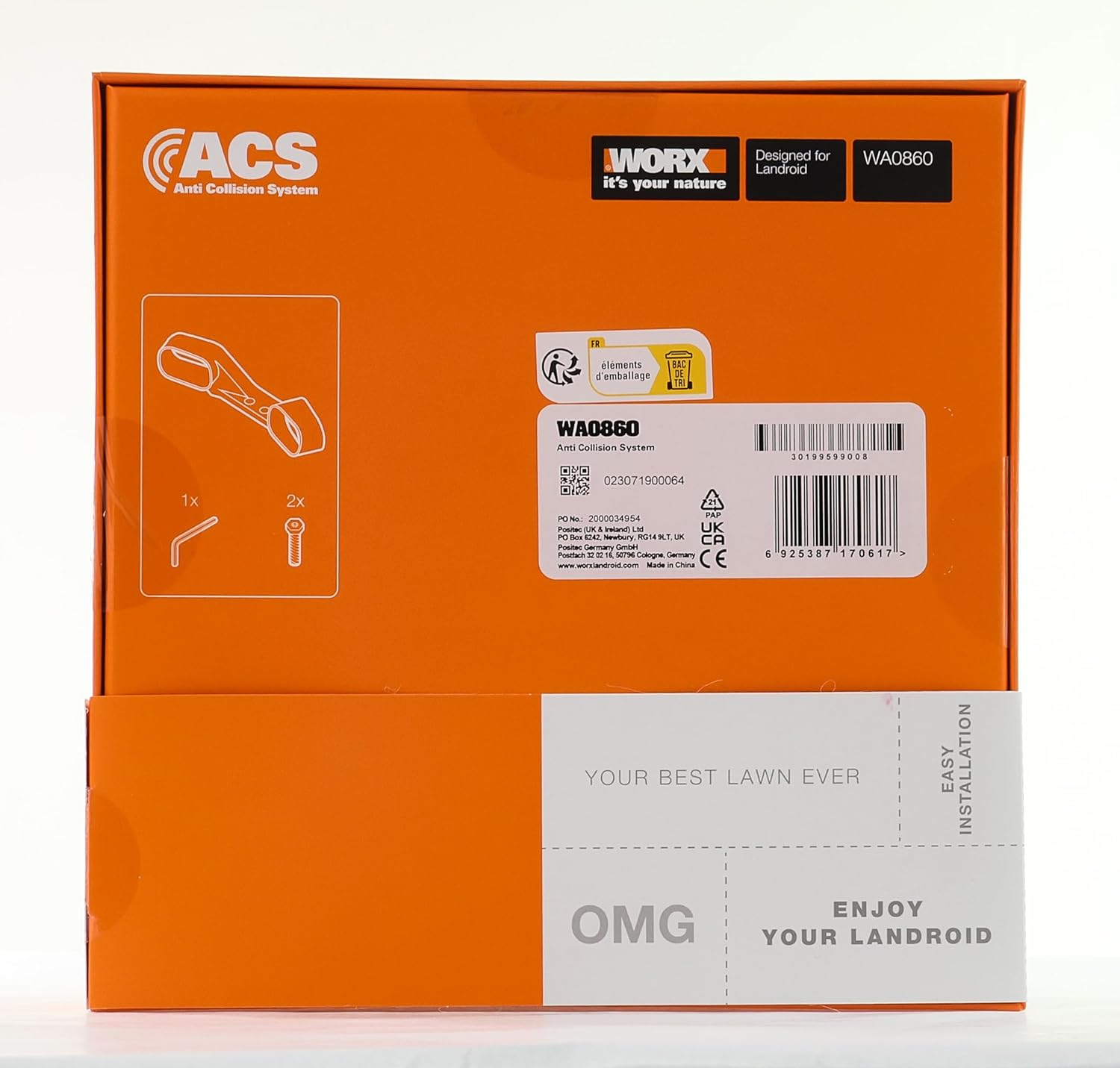 Das Worx WA0860 Landroid-Modul Kollisionssensor ACS ist ein Antikollisionssystem für den Landroid Mähroboter, das Hindernisse beim Rasenmähen erkennt und umgeht.
