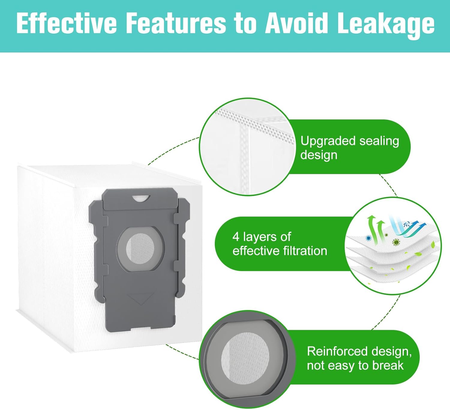 Perfectly Compatible with Roomba Vacuum Bags: ctc connexions vacuum bags are fully compatible with iRobot Roomba i & s & j series i3, i3+ (3550), i7, i7+, j7, j7+, i7Plus (7550), i4, i4+ (4552), i6, i6+ (6550), i8, i8+ ( 8550), s9, s9+, s9Plus (9550) automatic dirt disposal bag, are perfect replacement for iRobot Roomba vacuum bags.