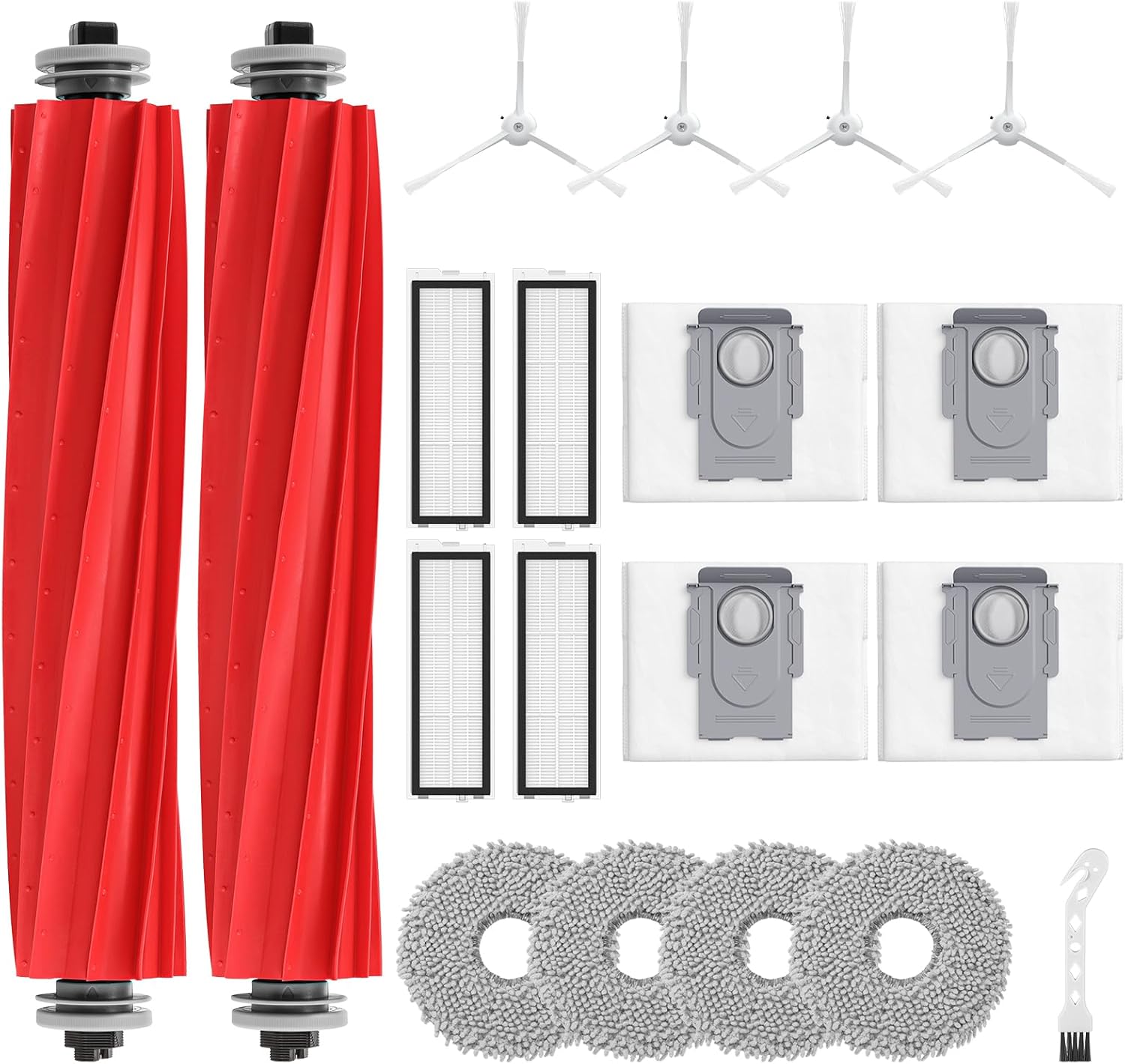 【𝐏𝐀𝐂𝐊𝐀𝐆𝐄 𝐈𝐍𝐂𝐋𝐔𝐃𝐄】Our Qrevo S/ Qrevo Pro/ Qrevo MaxV robot vacuum accessories contains 2 Pack Roller Brushes, 4 Pack HEPA Filters, 4 Pack Dust Bags, 4 Pack Mop Pads, 4 Pack Side Brushes, 1 Pack Cleaning Brush. Totally 19 Packs Qrevo S accessories in the Package.