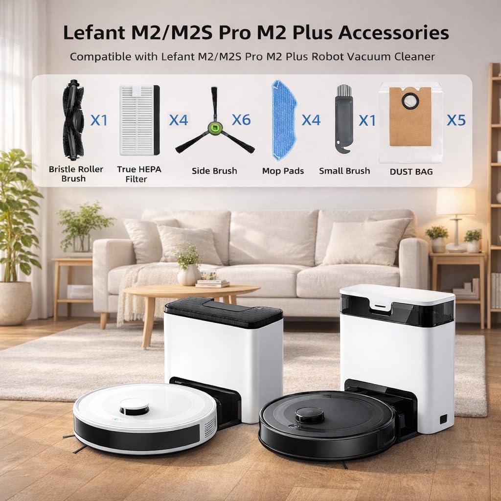Be the first to review “20 Pack Replacement Accessories Compatible with Lefant M2/M2S Pro M2 Plus Robot Vacuum Cleaner, 1 Roller Brush,6 Side Brushes,4 HEPA Filters,4 Mop Pads,5 Dust Bags 1 Small Brush Vacuum Cleaner”