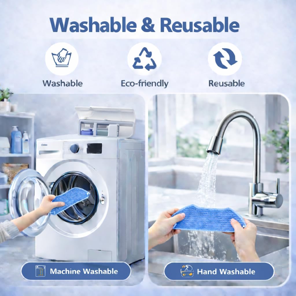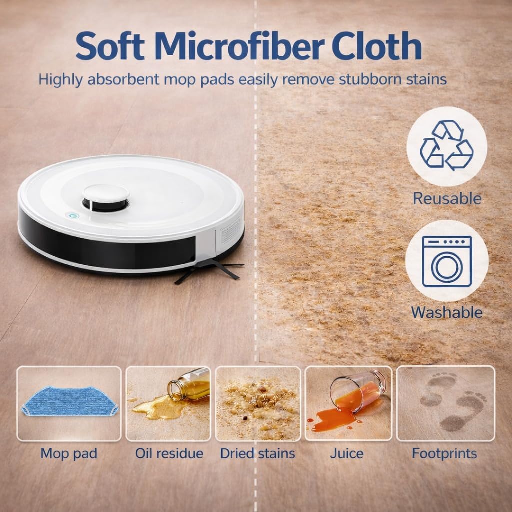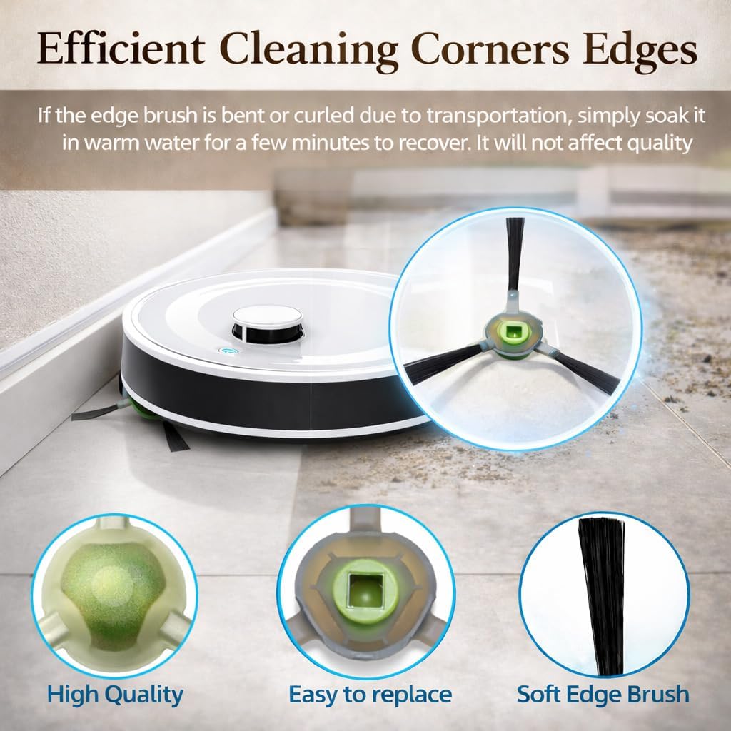 [Reusable Mop Pads] – Made with strong absorbent microfiber, these mop pads are reusable, fast-drying, and resistant to fading or lint. For best performance, we recommend replacing accessories every 1–3 months depending on usage. Tip: If side brushes become bent during shipping, simply soak them in warm water to restore shape.